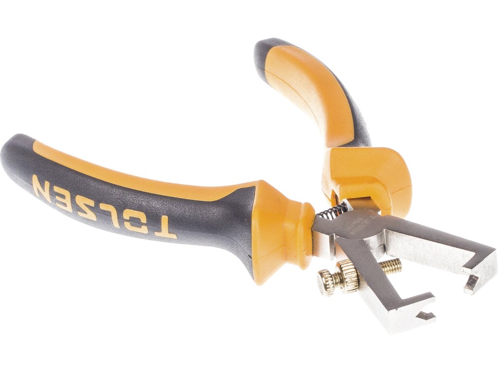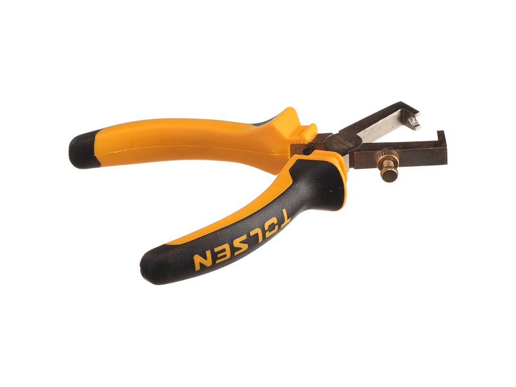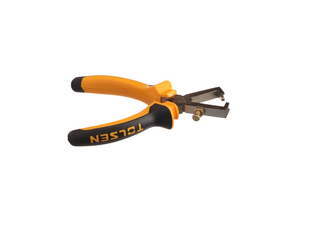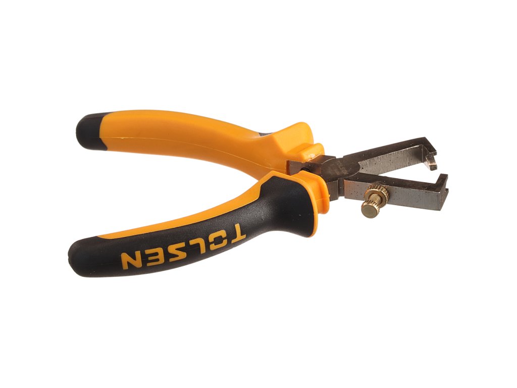 Izdelana iz kovanega jekla, ponikljana. Ročaji so opremljeni z dvobarvnimi mehkimi rokavi. Primerno za odstranjevanje izolacije, nastavitveni vijak za nastavitev glede na premer vodnika.