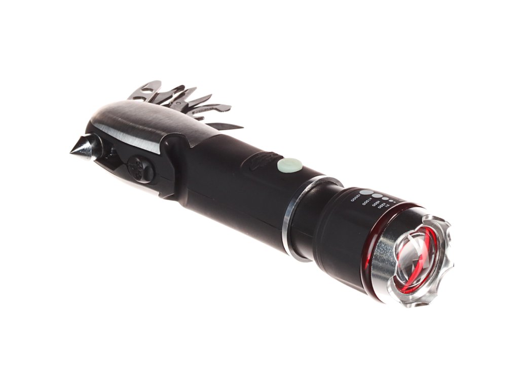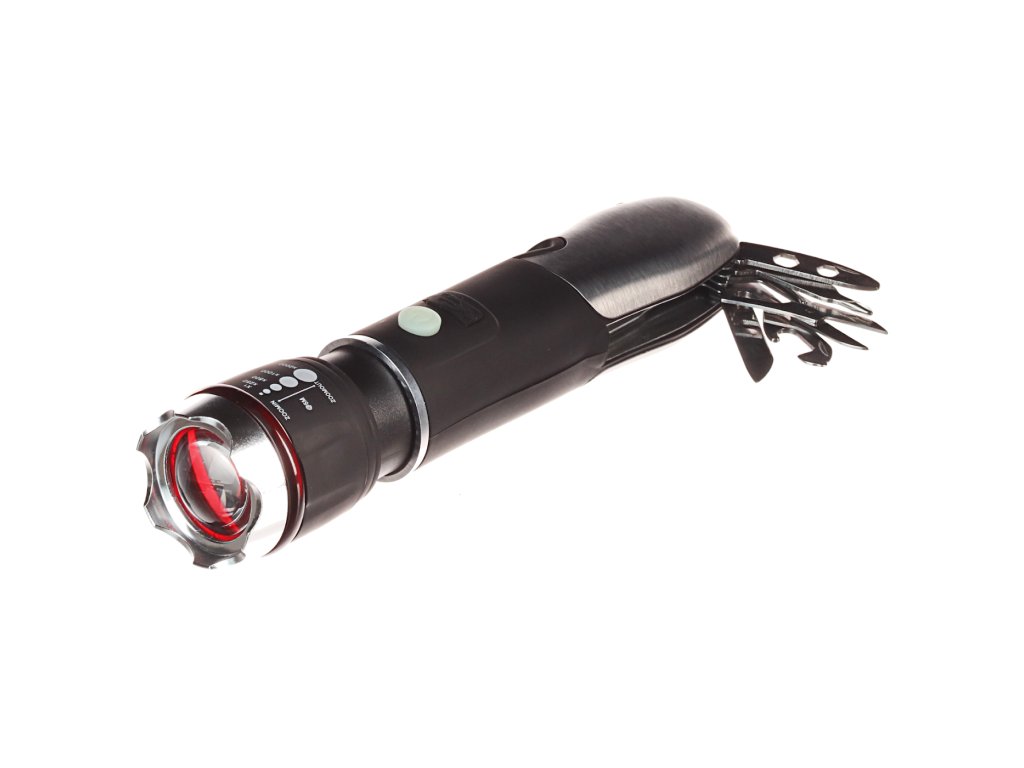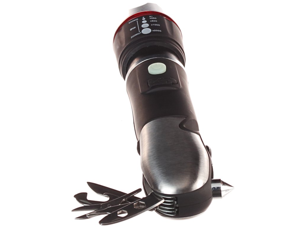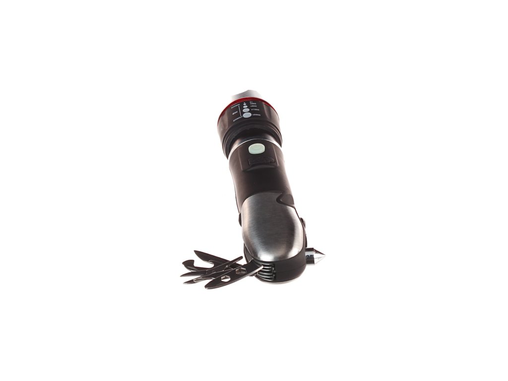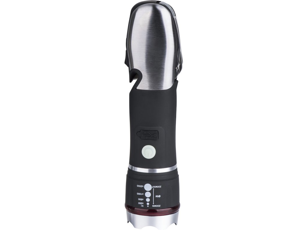 Večnamenska svetilka v aluminijasti izvedbi s svetlobnimi načini: visoka, nizka, utripajoča. Opremljen s funkcijo ZOOM in nizom uporabnih orodij za nagibanje. Vir svetlobe: LED, svetlobni tok 120 lm. Napajanje: Li–ionska 18650 polnilna baterija s polnjenjem USB.