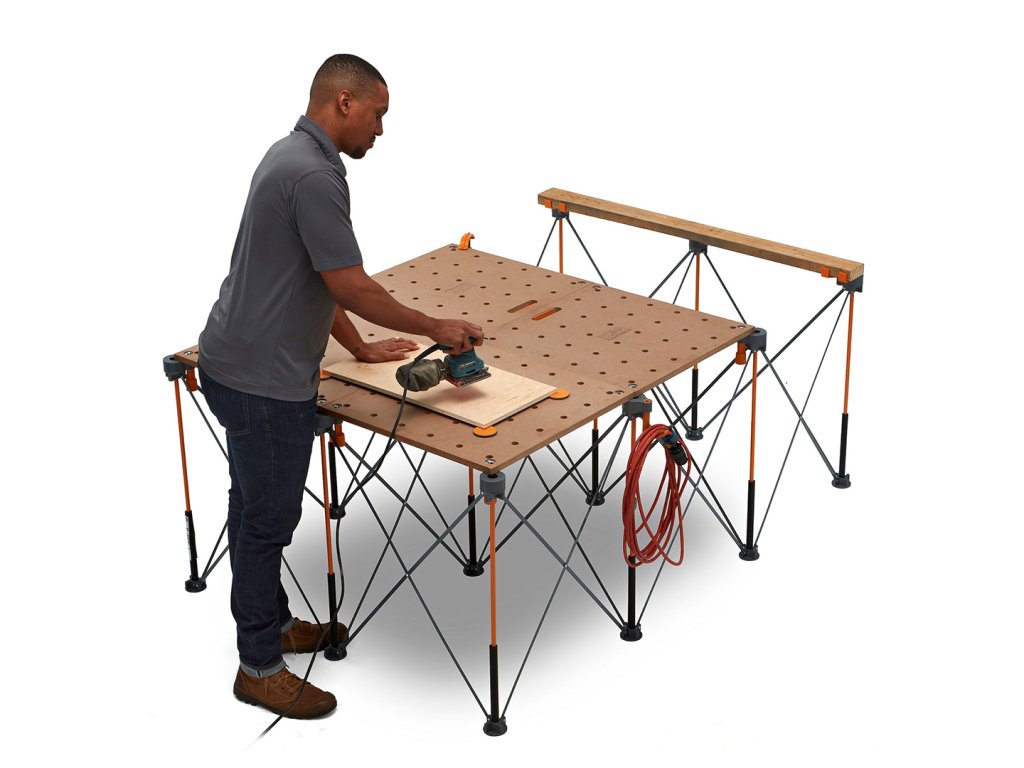 Delovna stonožnica BORA je najbolj prilagodljiva rešitev za vašo delovno postajo, delavnico ali gradbišče. Lahko ga razvijete in zložite v nekaj sekundah brez potrebe po orodjih ali montaži, tako da bo vaše celotno delovno mesto pripravljeno v nekaj sekundah. Je dovolj vsestranski, da ga lahko enostavno namestite v zaprtih prostorih ali na prostem, hkrati pa zadovoljite vse svoje potrebe.