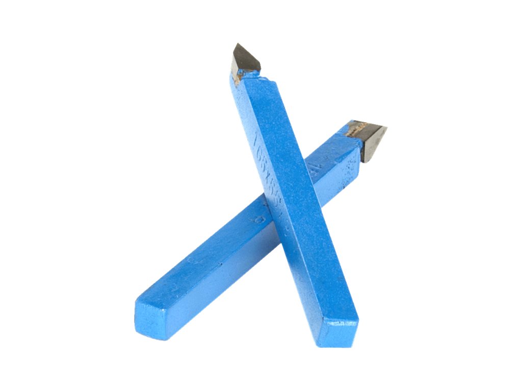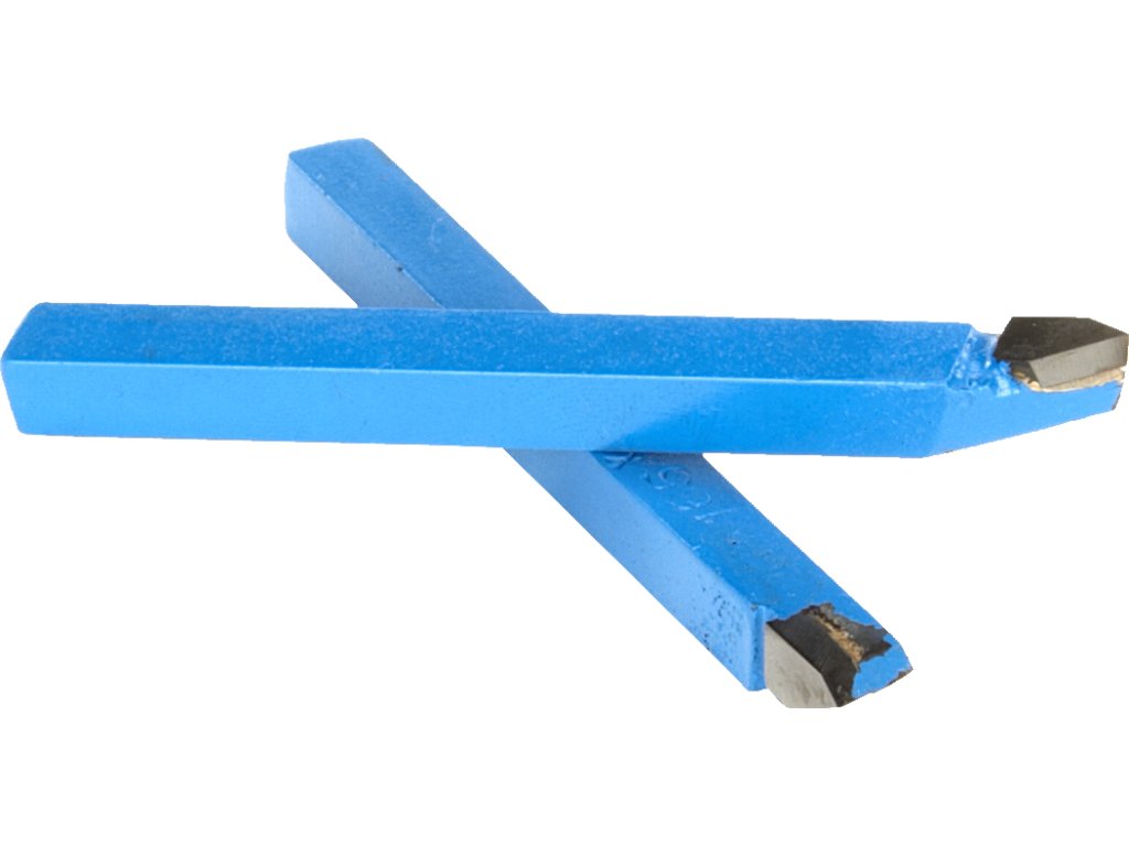 Komplet 2 kosov navojnih zunanjih orodij za struženje 8 × 8 mm s spajkanimi rezili. Koti vrha na lopaticah 55° in 60°.
