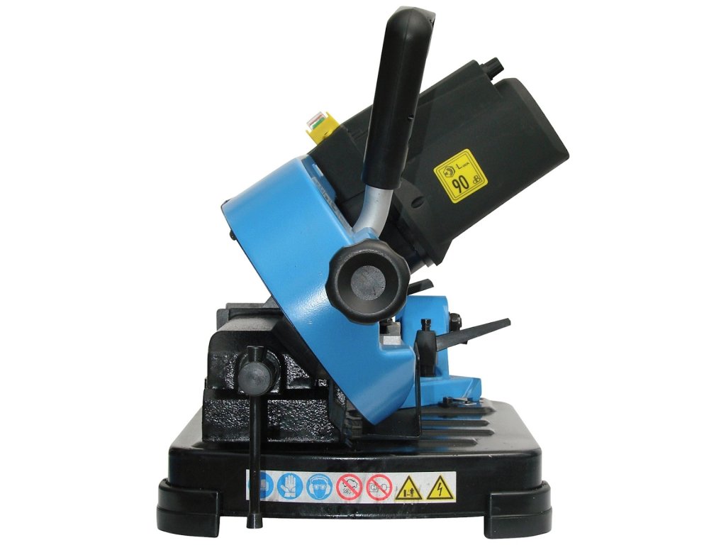 motor 400 W/P1 (→ 2.000 - 4.200/min., način delovanja: S6/30 %), stabilna delovna miza, jeklena viza za vpenjanje materiala, ki ga je treba rezati, osnovni del z luknjami (4) za fiksno montažo.
