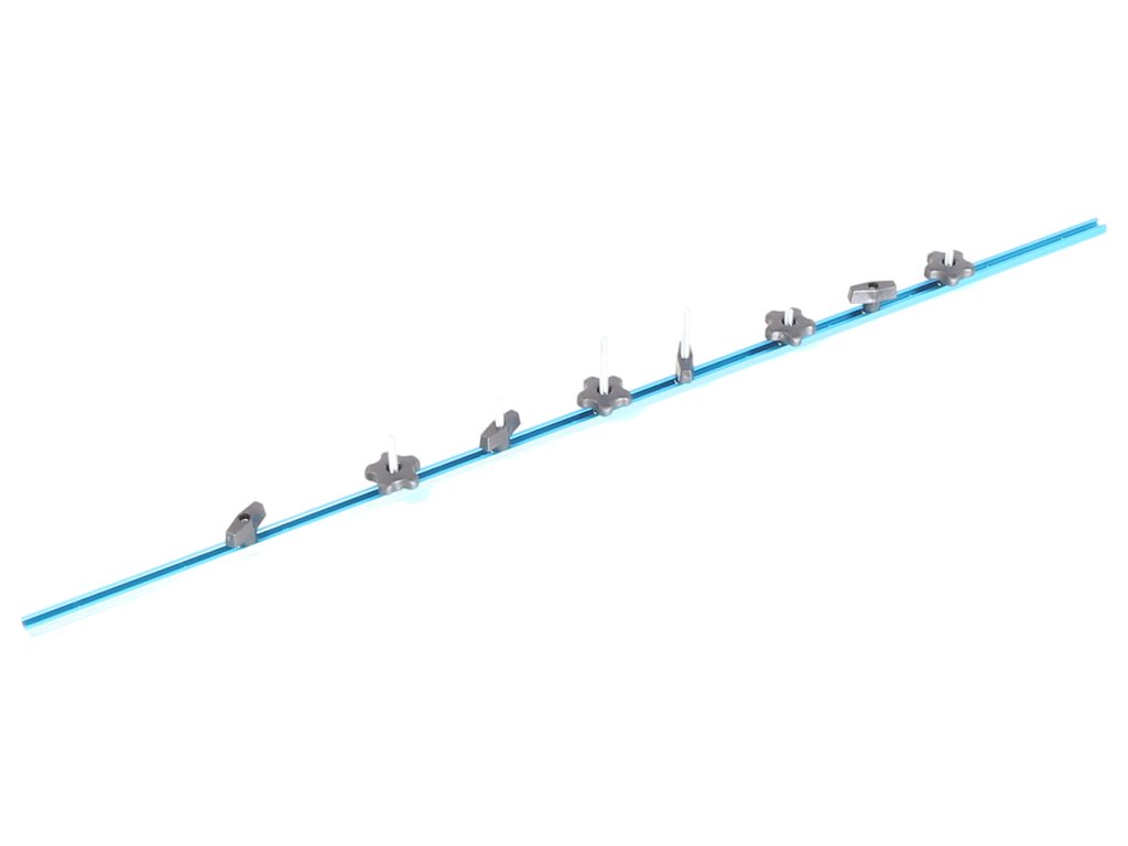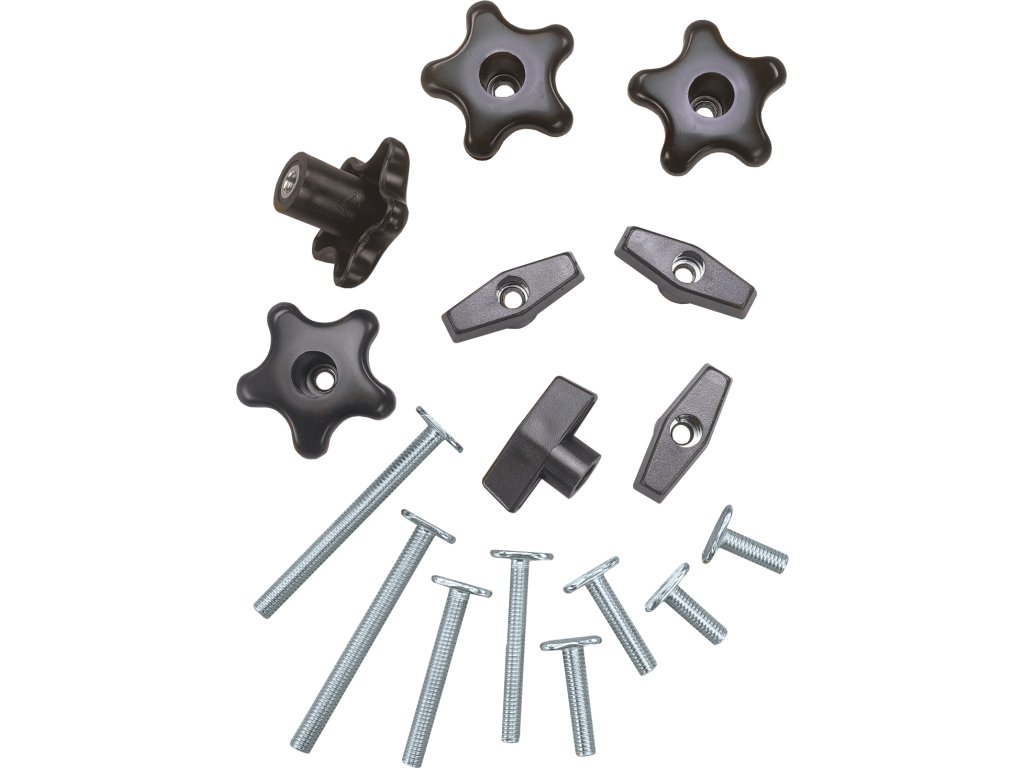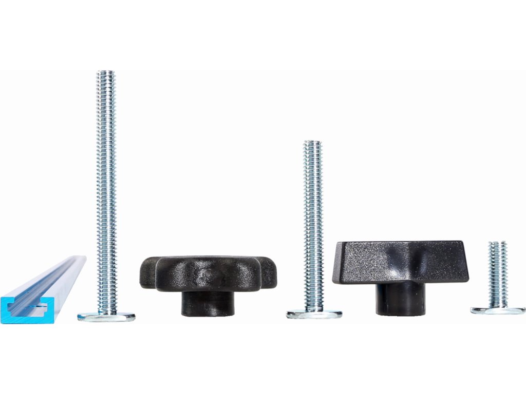 Komplet za izdelavo kakršnih koli vpenjalnih in montažnih šablon ter nastavljivih zaustavitev. Vključuje osnovne komponente za izdelavo napeljave za klop in ponavljajočo se obdelavo: