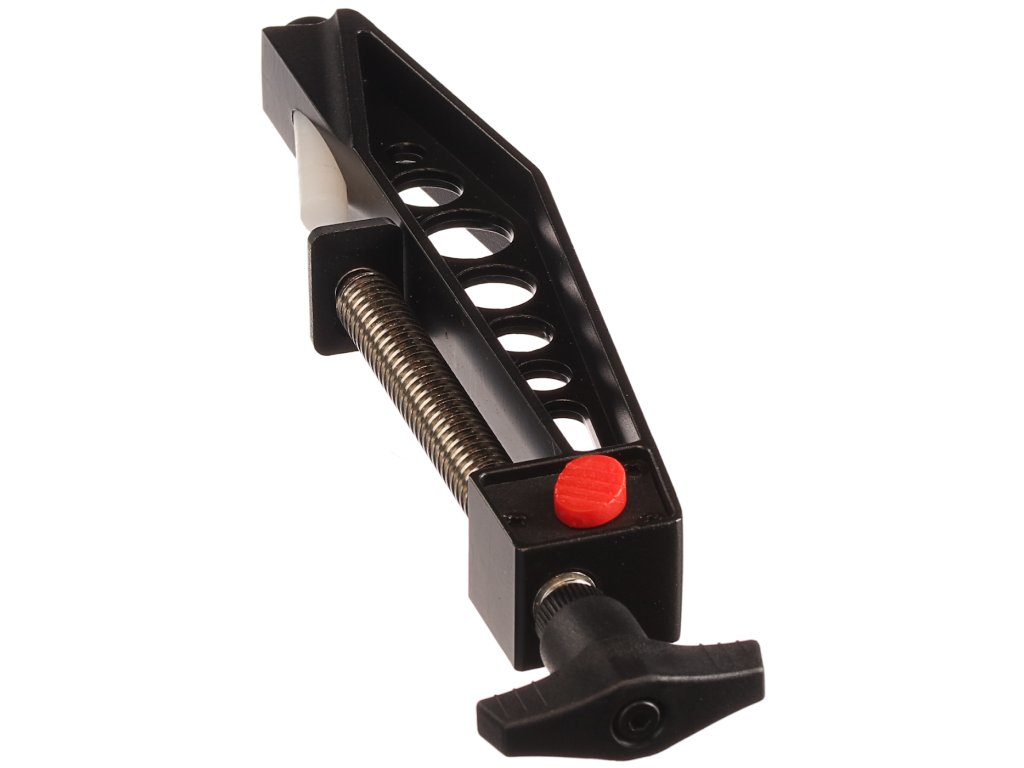 Objemka za priročno in natančno privijanje kotnih spojev okvirja. V eno od lukenj za vijak se vstavi plastični vodilni zatič Ø 9,2 mm, objemka pa se zategne z vijakom, kar zagotavlja popolno poravnavo spoja. Gumb za hitro sprostitev. Za vrtalne spoje pod kotom 15°. Dolžina 75 mm.