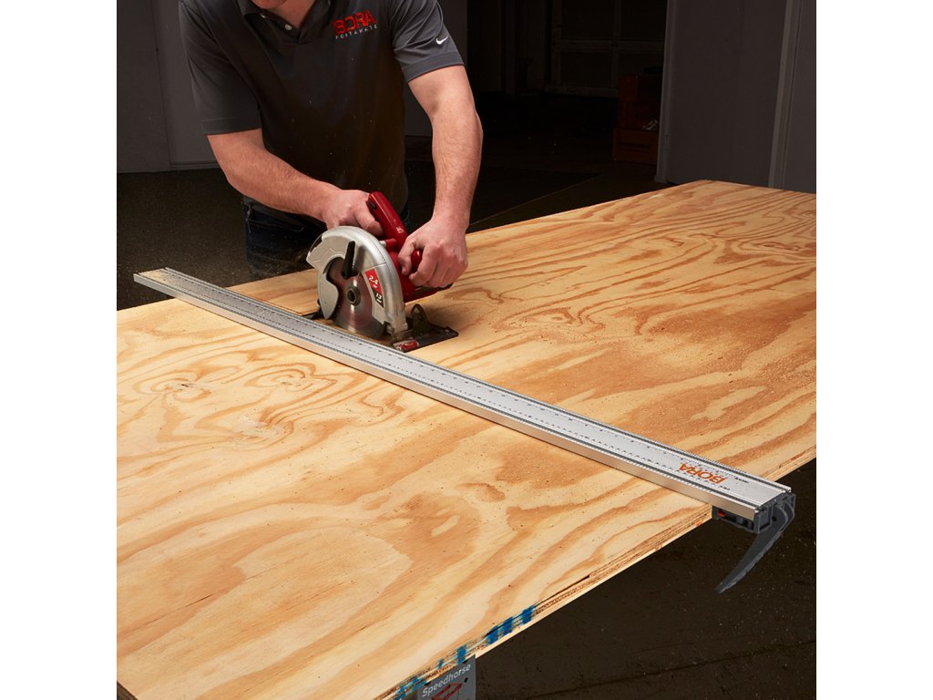 Poslovite se od ukrivljenih kosov - zahvaljujoč vodilni tirnici BORA, vam ni treba več skrbeti za to težavo. Vodilna tirnica omogoča enostavno doseganje ravnih in natančnih rezov pri rezanju lesenih površin ali ozkih materialov iz pločevine. Samo prilagodite konec objemke na želeno dolžino in jo zaklenite na mestu. Uporaba vodilne tirnice je najlažji način za ravne in natančne reze.
