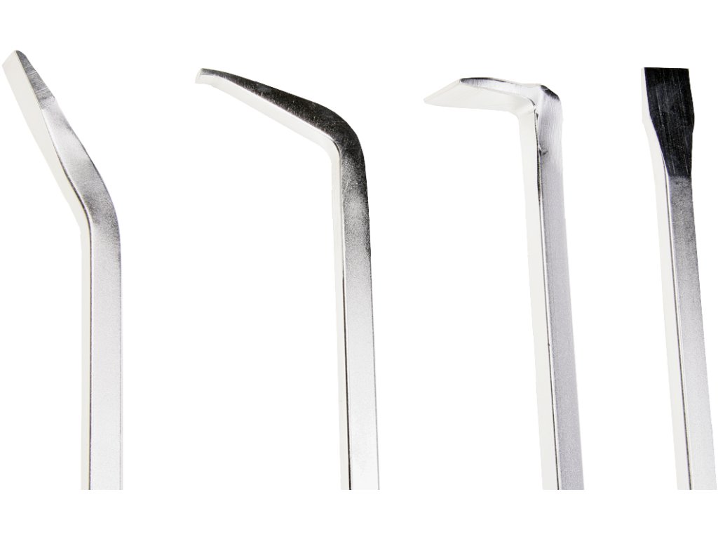 Komplet 4 lovilcev različnih oblik z udobnimi ročaji. Opis orodja: dolžina 92 cm naravnost - širina konice 3 cm, dolžina 92 cm ukrivljenost 30° - širina konice 3 cm, dolžina 61 cm ukrivljenost 70° - širina konice 1,5 cm, dolžina 61 cm ukrivljenost 90° - širina konice 3,6 cm.