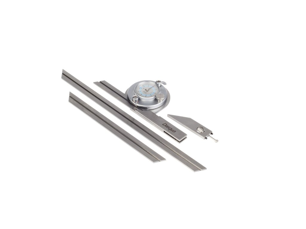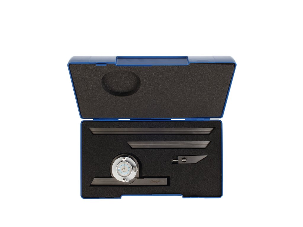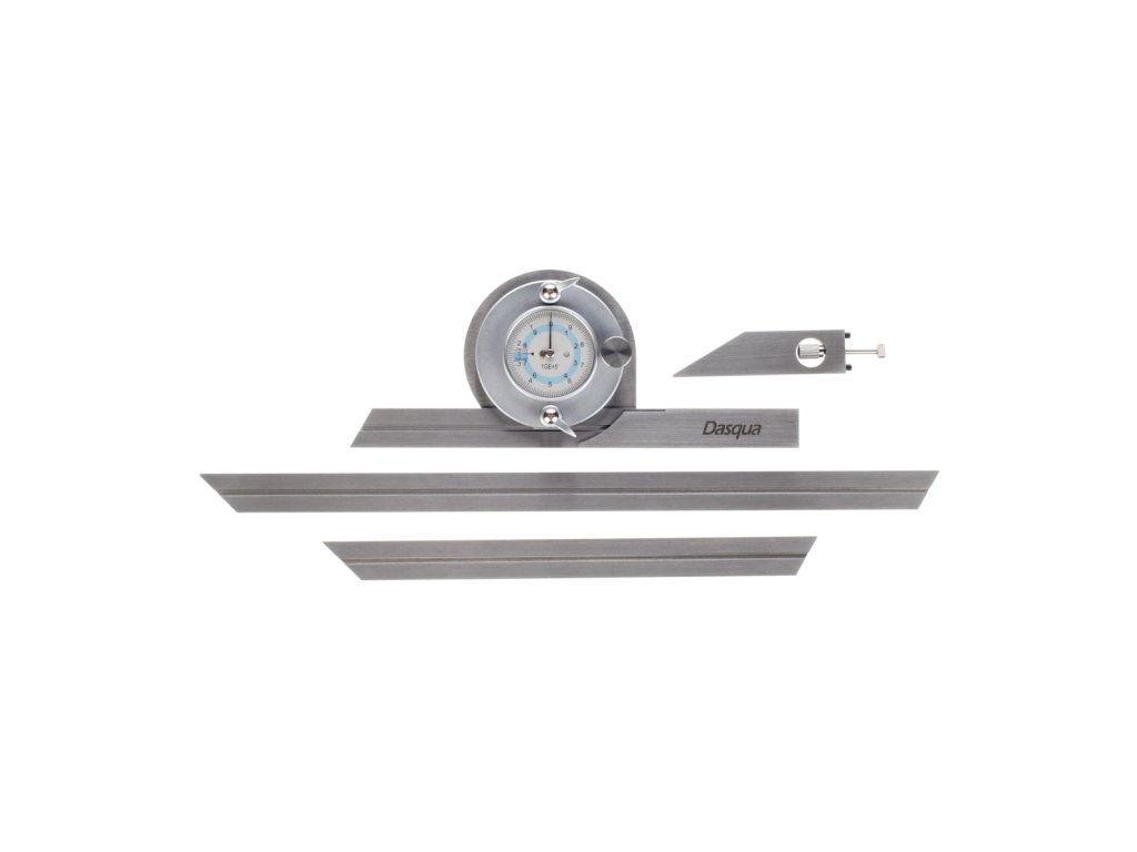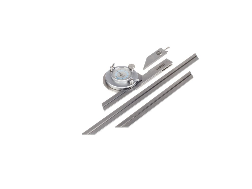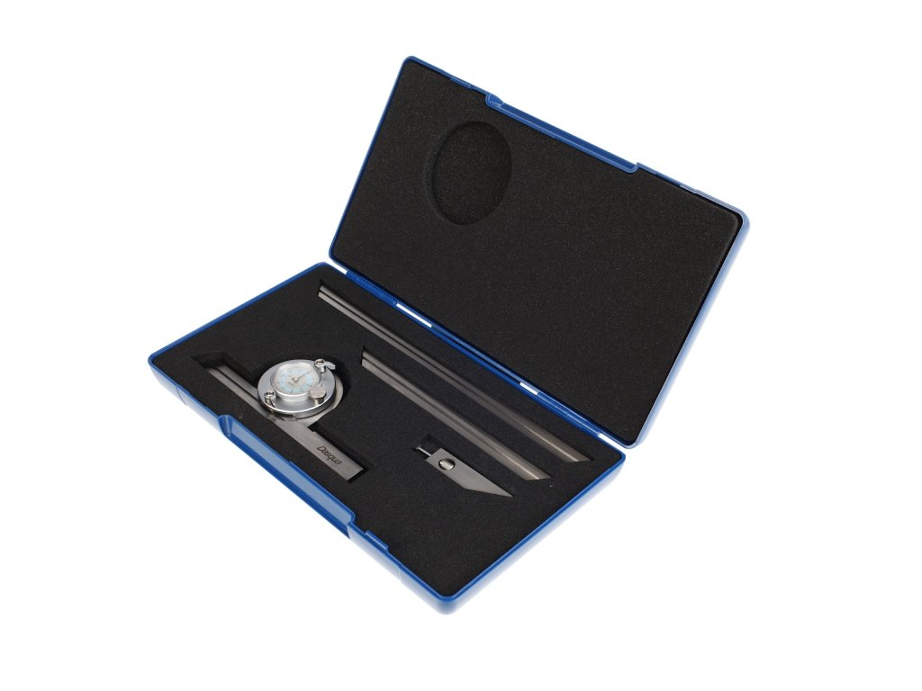 Visoko natančen univerzalni ravnilo kototorja z dometom od 0 do 360° in natančnostjo nastavitve 2′, izdelano iz nerjavečega jekla proti koroziji, zagotavlja fino, gladko nastavitev in krožno lestvico za natančno berljivost, skupaj s povečevalnim steklom. Merilna površina je utrjena, zmleta in obložena, da se zagotovi gladko gibanje. Kototor je opremljen s tremi rezili (150 mm, 200 mm in 300 mm).
