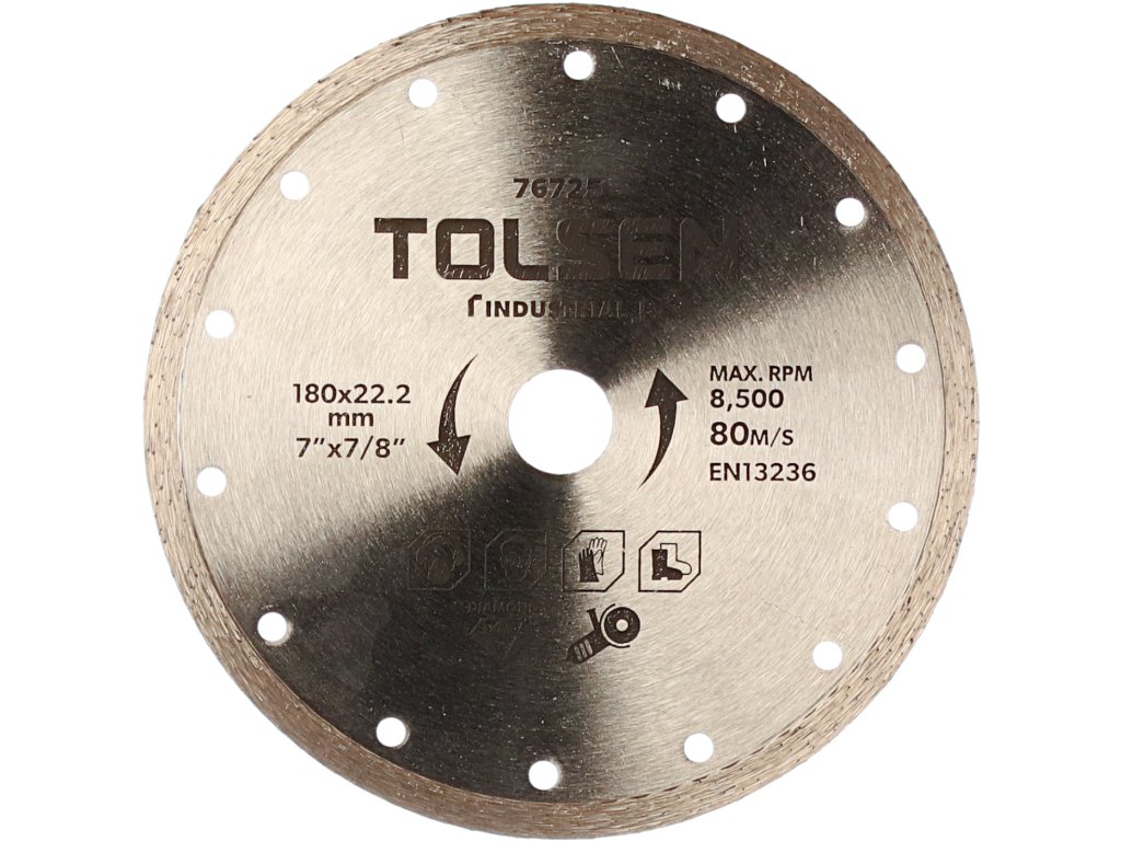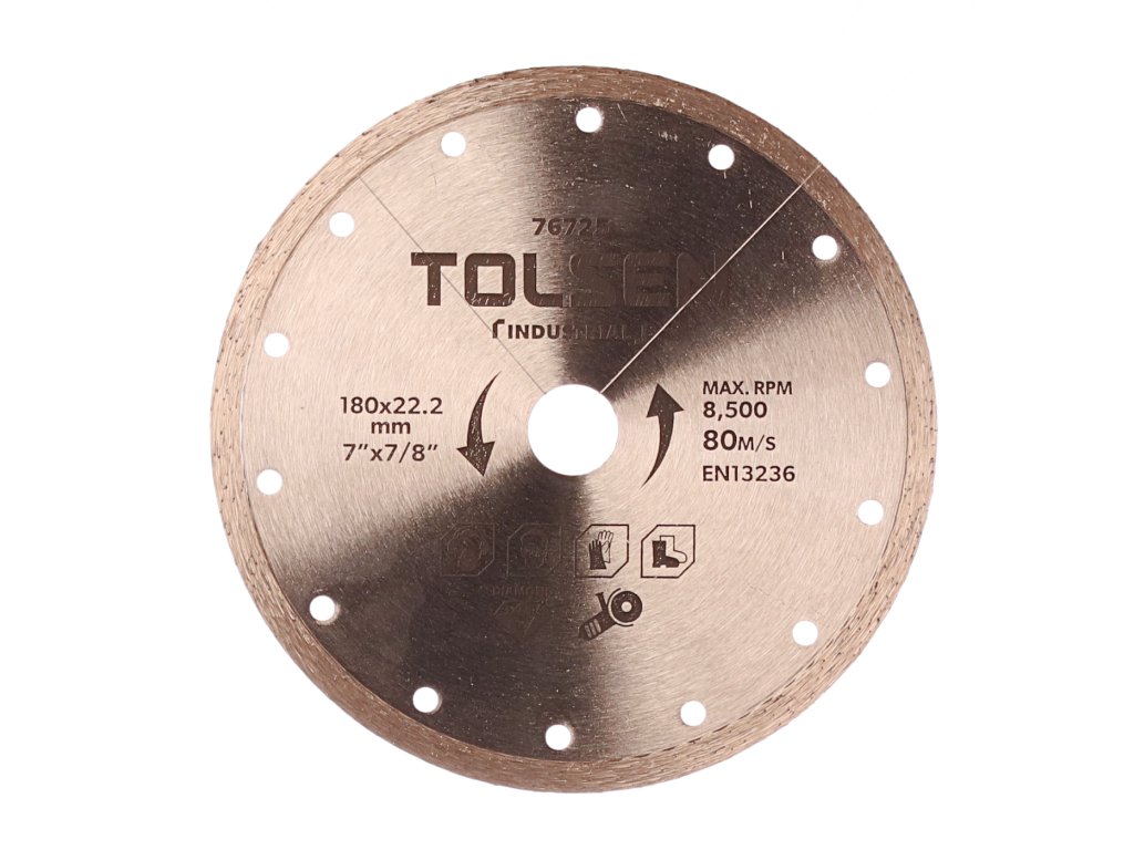 Visokokakovostno diamantno rezilo je namenjeno suhem rezanju zidov, opeke, strešnih kritin in drugih gradbenih materialov. Višina segmenta 10 mm. hitrost: 8.500 vrt / min