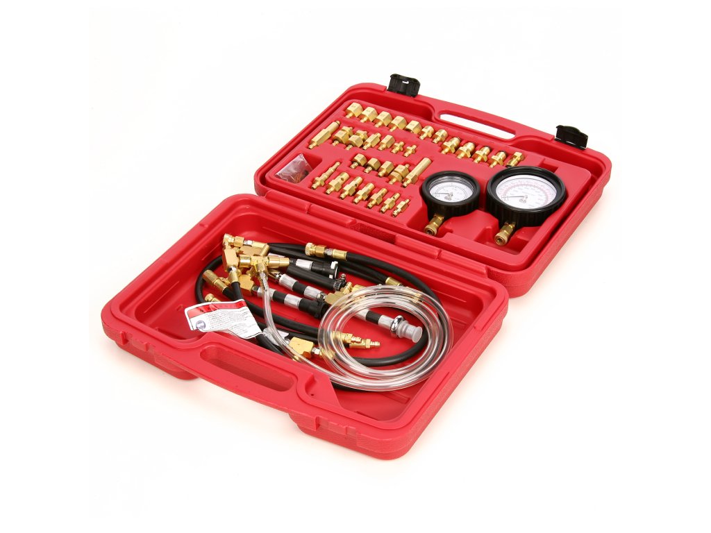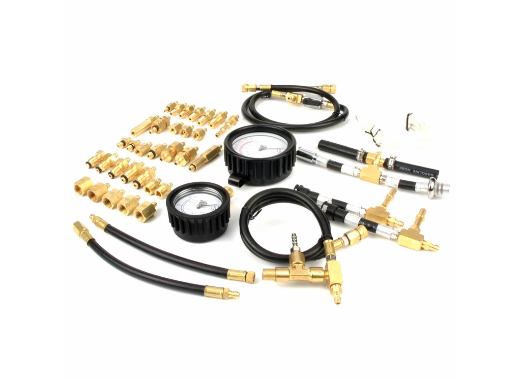 Vključuje velik 3 1/2" manometer z dvojnimi lestvicami 0 - 145 psi in 0 - 1,000 kPa, majhen manometer za natančno merjenje majhnih tlakov do 15 psi. Vsi adapterji za merilnike, hitre spojke in skakalci so namenjeni hitremu in učinkovitemu testiranju brizgalnih sistemov. Komplet vsebuje tudi varnostni ventil, ki razbremeni pritisk in preprečuje njegovo preseganje. Dostavljeno v plastičnem ohišju, vse lepo urejeno.
