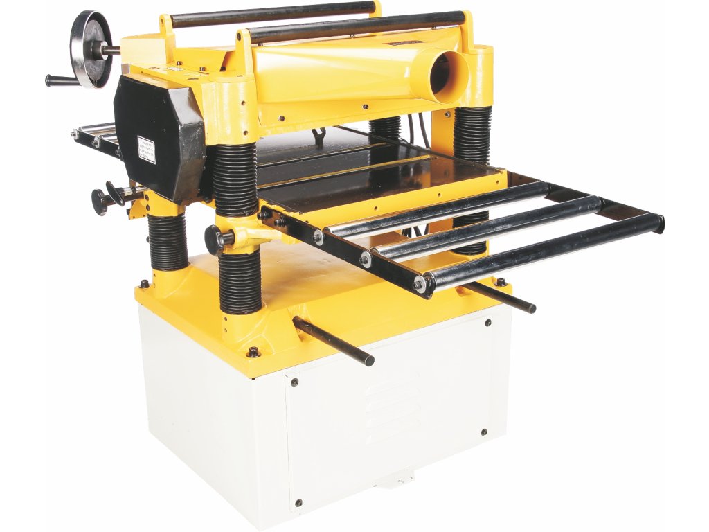 Dvostopenjski izbirni podaj (4,8 in 6 m/min). Natančno obdelana miza ima polirano površino, njen hod pa je opremljen s priročnim ročnim kolesom za natančno nastavitev z digitalnim odčitavanjem. Odprtina je opremljena z napravo proti udarcu, stikalom z zaščito pred preobremenitvijo, dodatnimi valji, ki razširjajo mizo + 2 valja na vrhu stroja in prirobnico za ekstrakcijo Ø 100 mm.