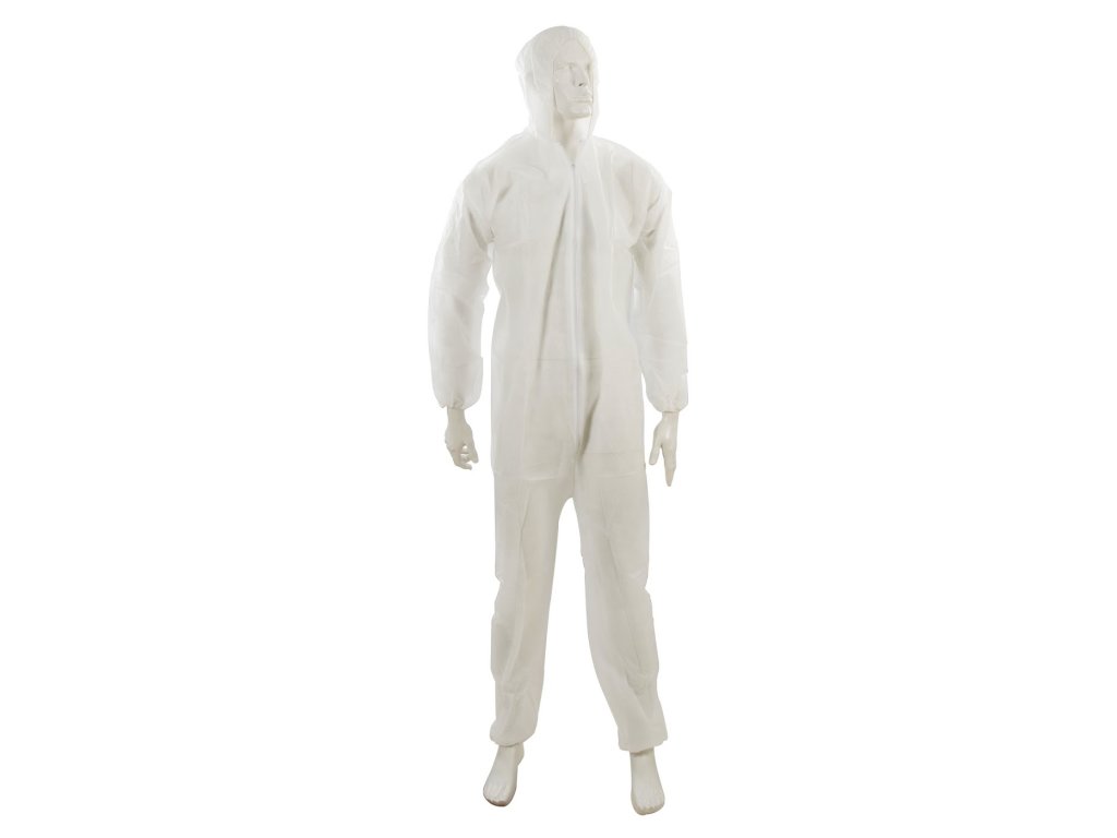 Bela polipropilenska kombinezon z zadrgo spredaj, elastična kapuca, manšete in gležnji. Lahka in zračna, ščiti pred prahom in umazanijo. Idealno za DIY, splošno vzdrževanje in prašna okolja. Kupite kombinezon, ki je zaradi oblačil ena velikost večja.