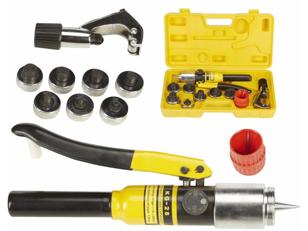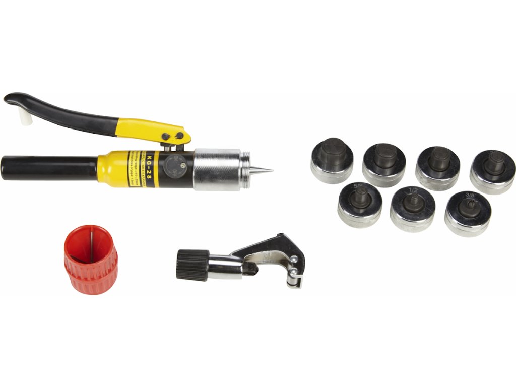 Hidravlična šablona se uporablja za enostavno razširitev koncev mehkih, bakrenih cevi za ustvarjanje spojev. Kaljene jeklene ekspanzijske čeljusti za cevi s premerom 10, 12, 16, 19, 22, 25, 28 mm, max. debelina stene 1 mm.