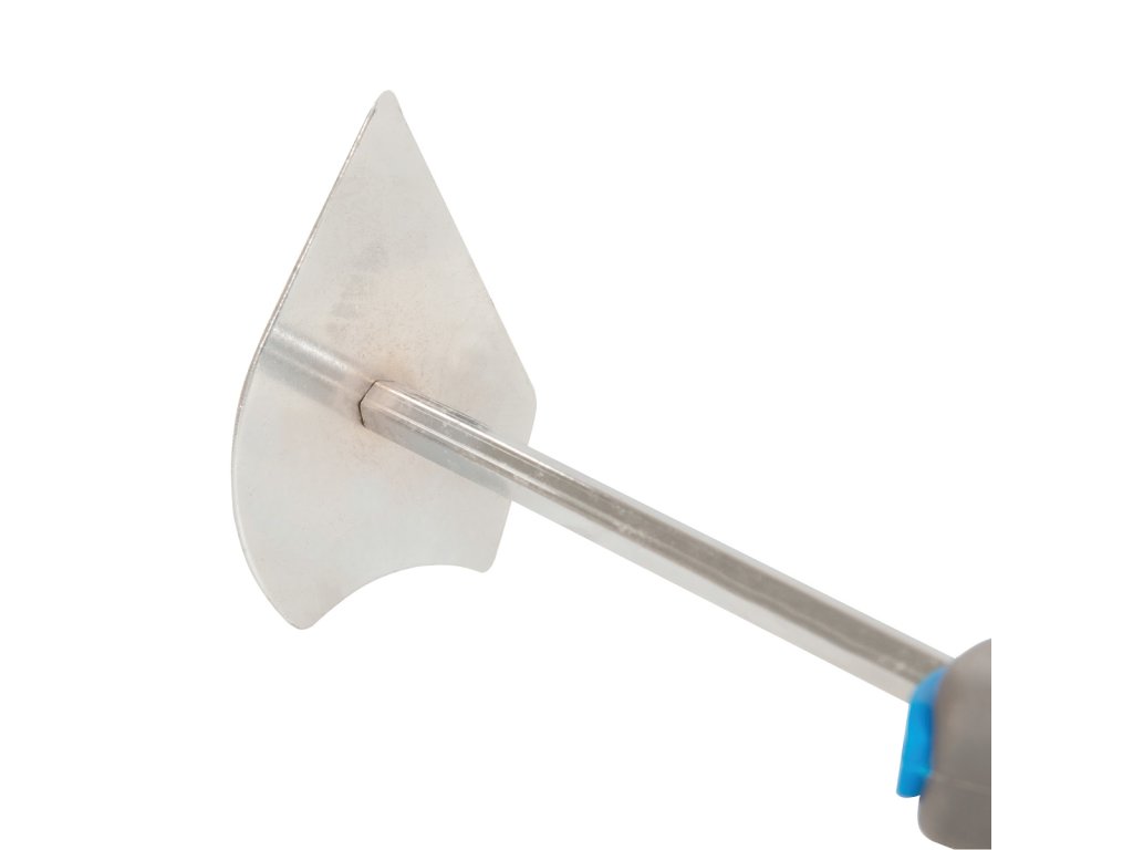 Korozijsko odporno vzmetno jekleno rezilo. Dvobarvni mehak, oblikovan ročaj. Za odstranjevanje barv in lepil iz ravnih, konkavnih in konveksnih oblik. Opremljen z luknjo za obešanje.