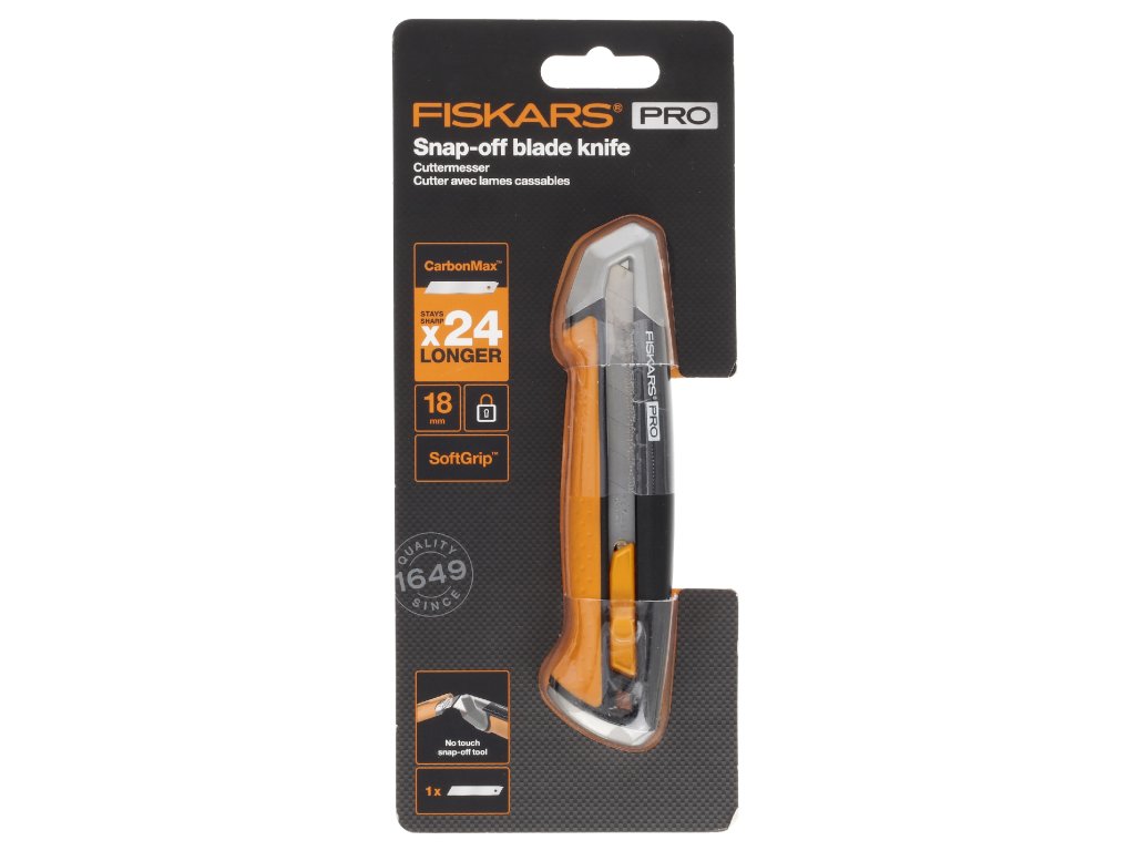 Nož za snap-off ima integriran pripomoček za enostavno strganje in lovljenje rabljenih rezil. Ročaj je ergonomičen z udobno površino SoftGrip. Nož je namenjen za odklopna rezila velikosti 18 mm.