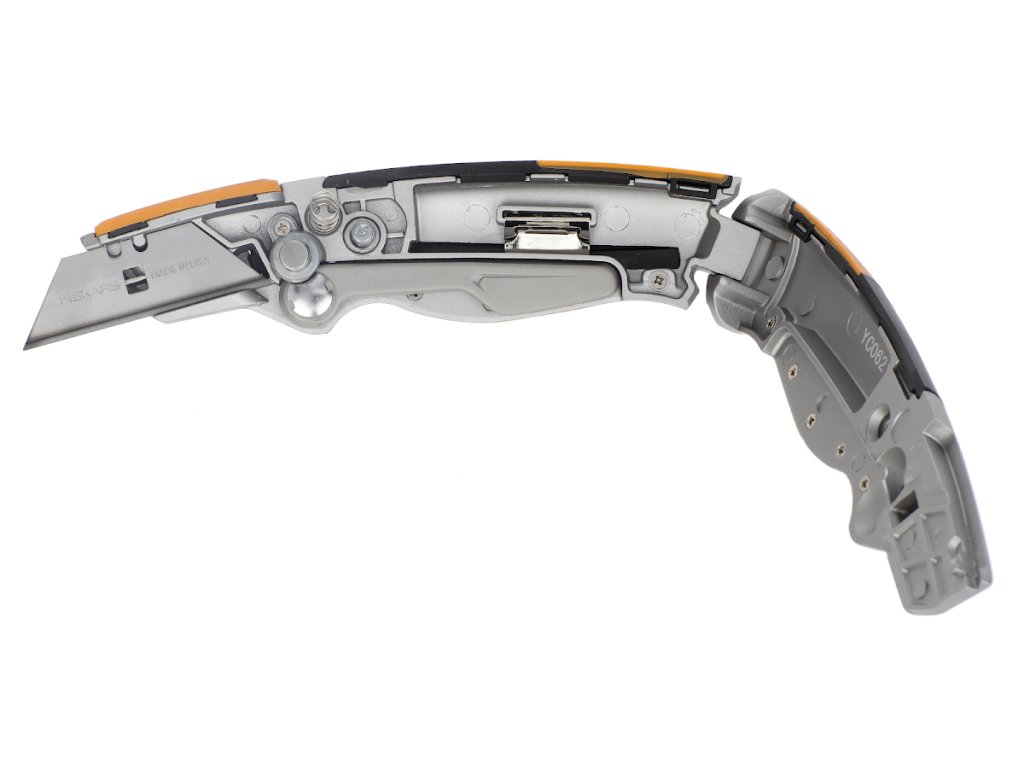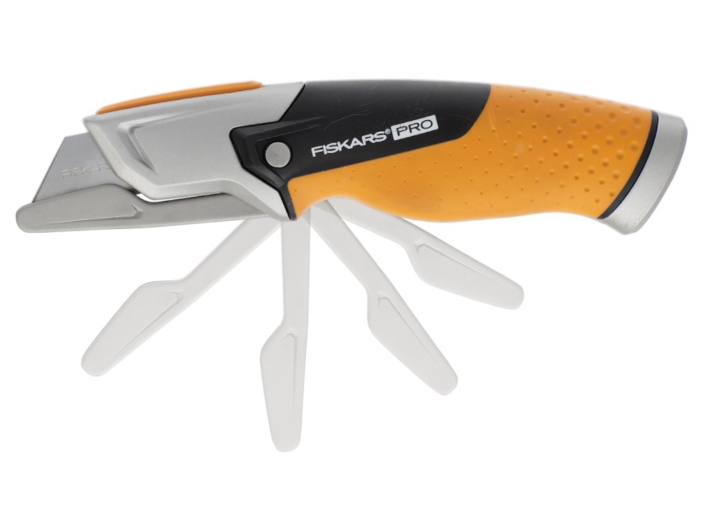 Univerzalni nož s fiksnim rezilom lahko z eno roko upravljate hitro in varno. Ima ergonomski ročaj s tehnologijo SoftGrip. Vključuje edinstven pokrov zložljivega rezila za maksimalno varnost. Ročaj je kovinski za optimalno ravnotežje in vzdržljivost, konec pa je izdelan iz utrjene kovine, ki zagotavlja zanesljivo odpornost na udarce in padce. Ima revijo za shranjevanje 5 rezil. Višina: 30 mm, dolžina: 259 mm, širina: 109 mm, teža: 232 g. Garancija: 5 let.
