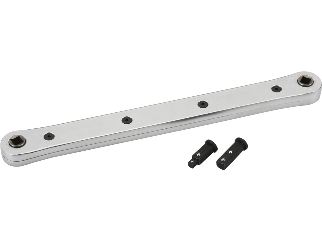 Orodje, ki olajša delo na ozkih ali težko dostopnih mestih, kot so vodne črpalke, servo volan itd. Velikost podaljška 340 x 35 mm, razmik 300 mm. Opremljen z dvema pogonskima adapterjema 1/4" in 3/8".