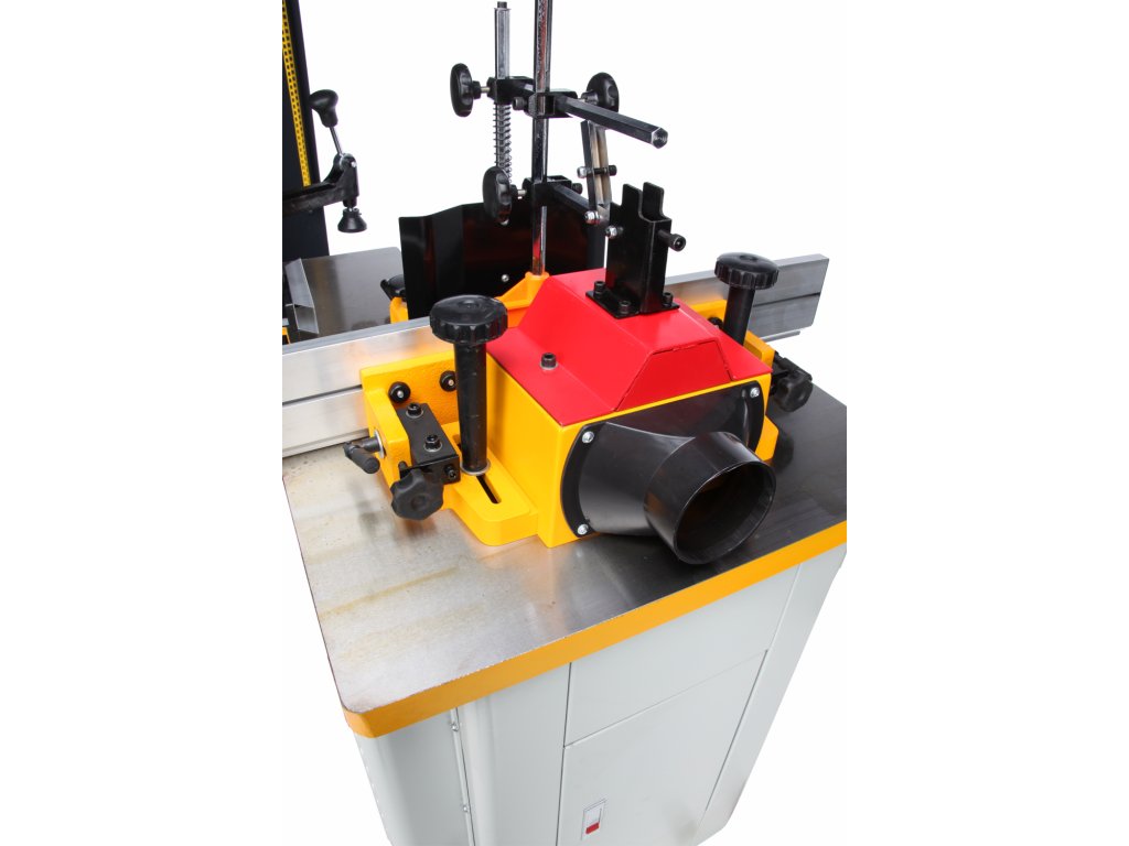 Pogon 1,1 kW/3 × 400 V/50 Hz, hitrost motorja 2.800/min, hitrost vretena 5.800 in 8.300/min, vreteno Ø 30 mm, orodje Ø največ 90 mm, gib vretena 65 mm, velikost mize 610 × 533 mm, velikost vozička 210 × 260 mm, hoda vozička 500 mm. Stroj je opremljen s spremenljivim sistemom varoval in tlačnih elementov, robustno podlago, vozičkom za gladko vožnjo in kotno ograjo. Prirobnica izpušnih plinov 75 mm. Dimenzije 820 × 720 × 1.060 mm.