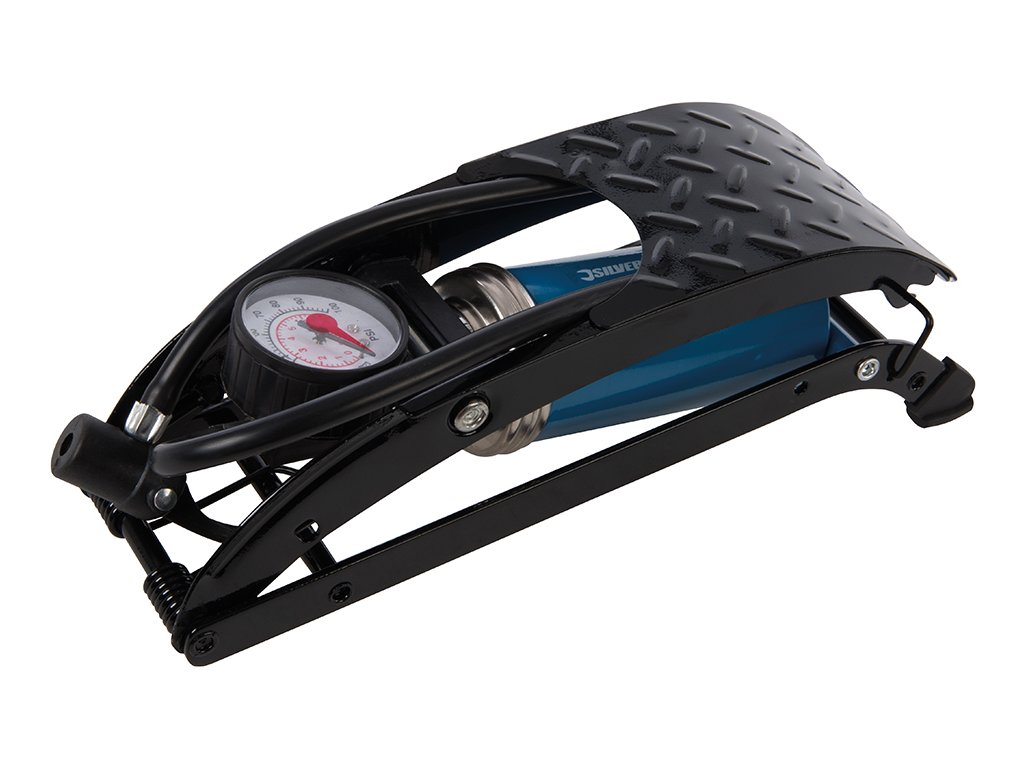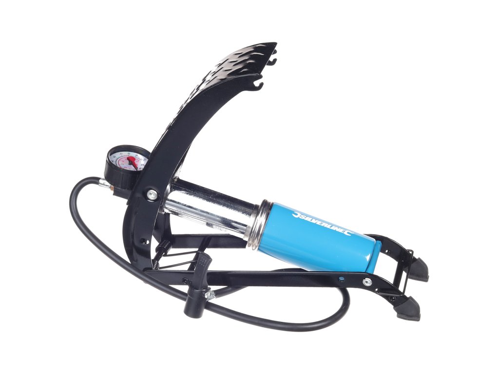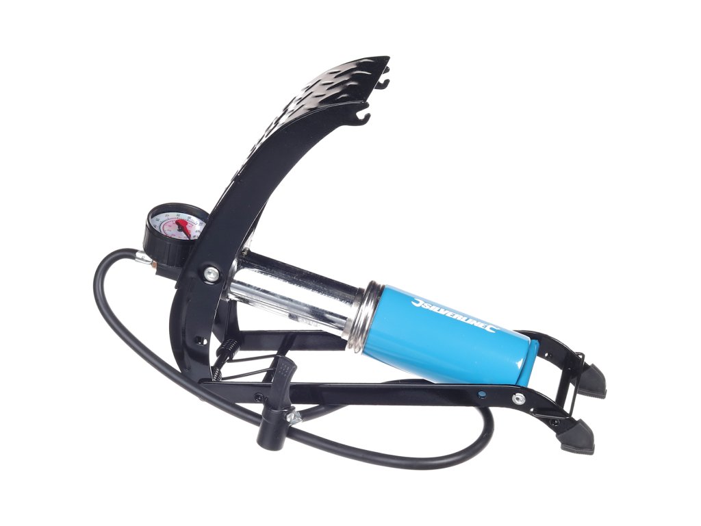Nožna črpalka z manometrom - enobatna srebrna linija