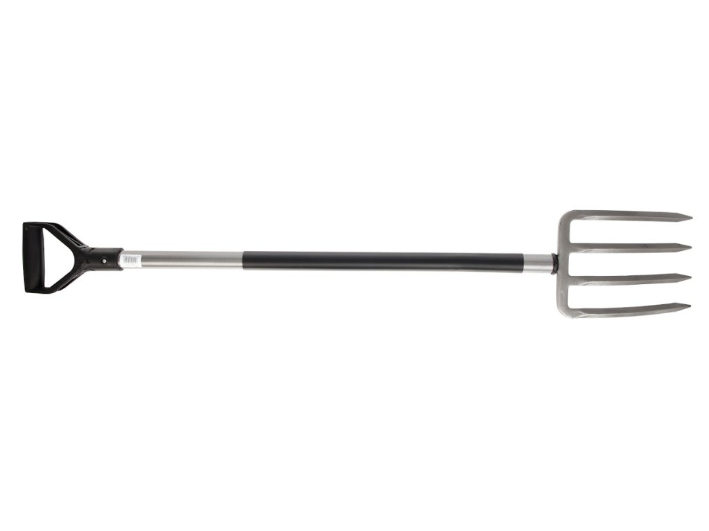 Nova ergonomska paleta orodij zagotavlja najbolj idealen delovni položaj in tako zmanjšuje utrujenost hrbta in ramen. Oblika ročaja omogoča naraven in udoben oprijem. Ročaj jeklene cevi je prevlečen s plastjo plastike na točki prijema, ki izolira roko od mraza. Rezilo je ostro za enostavno prodiranje v zemljo. Vilice imajo fiksne konice za razbijanje trde in skalnate zemlje. Originalna Fiskarsova številka: 133400.
