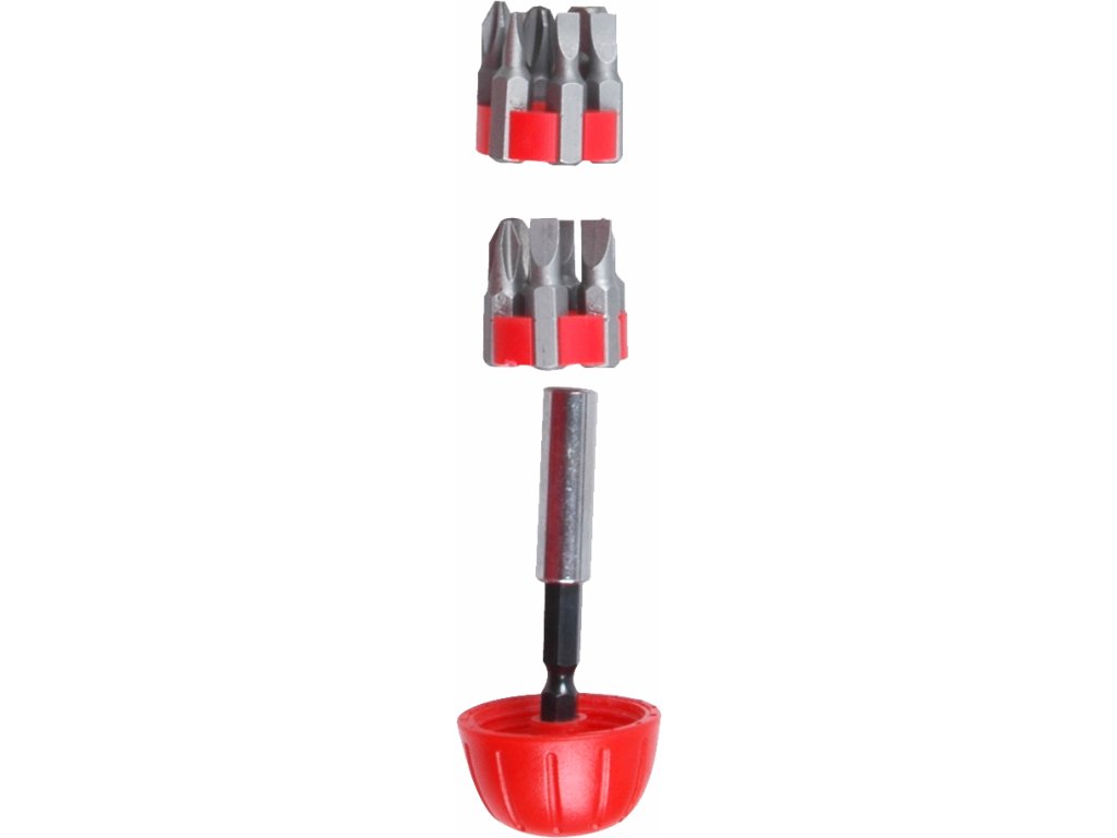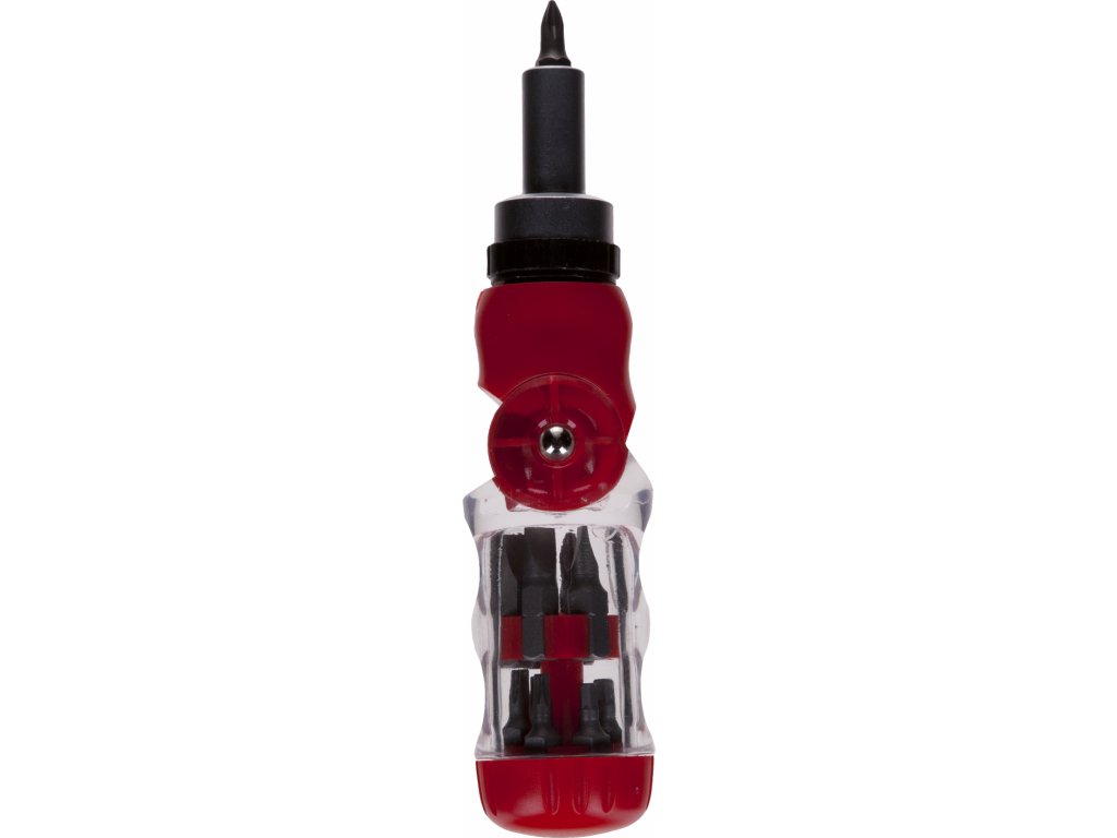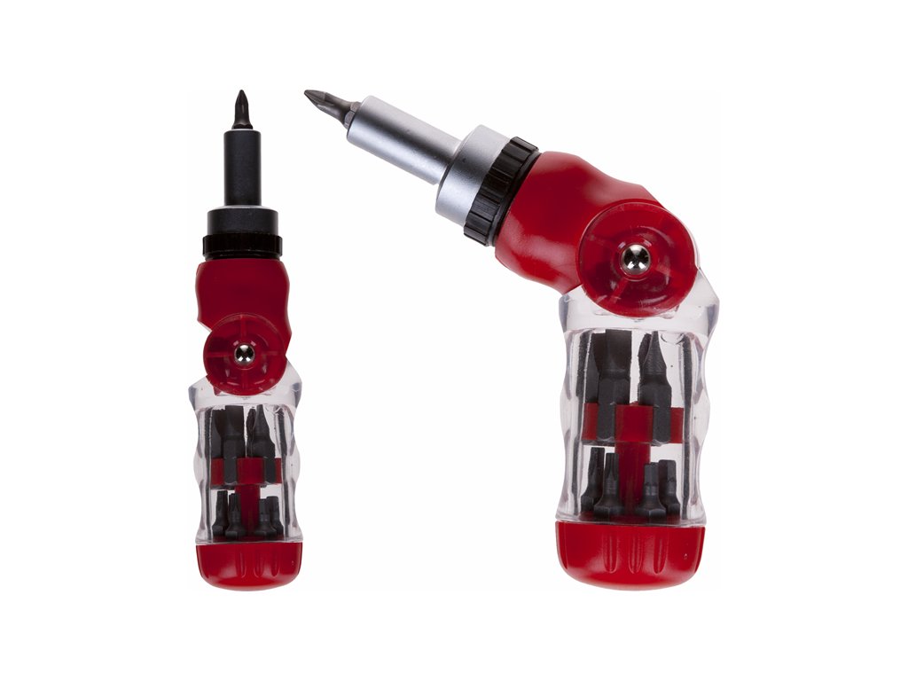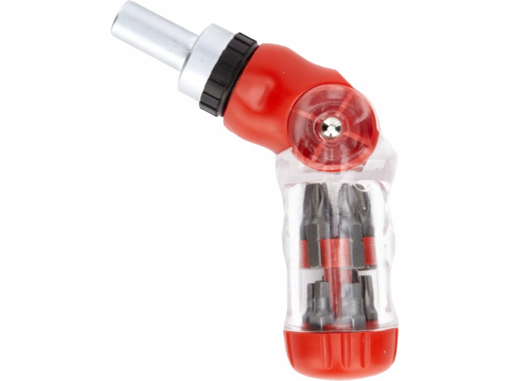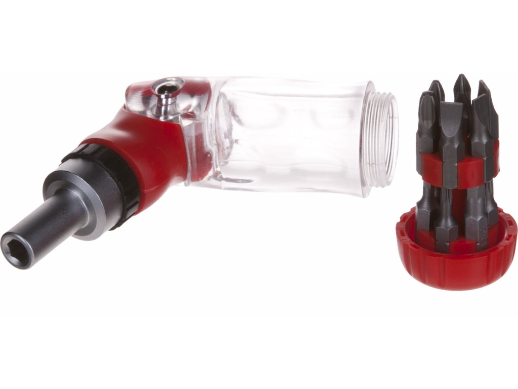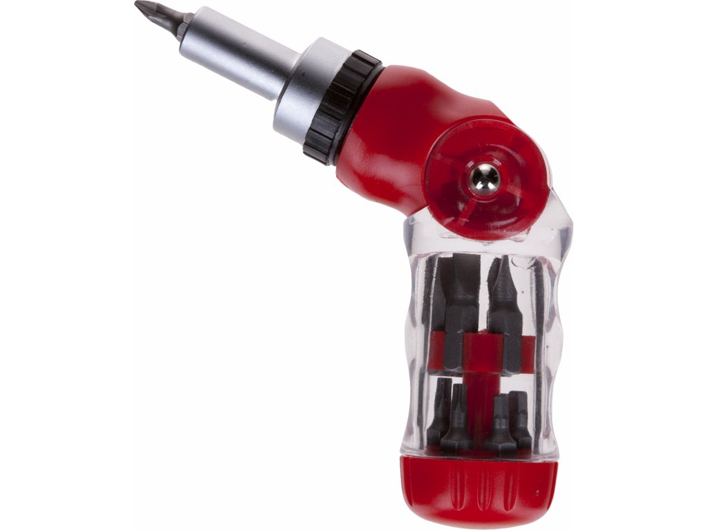 Žepni izvijač z zgibno glavo in dvostranskim zaskočnim zaskokom omogoča uporabo na manj dostopnih mestih. Ročaj vključuje 5, 6, 7 ravnih bitov; T15, T20, T25; Hex 3, 4, 5; PH1, PH2, PH3.