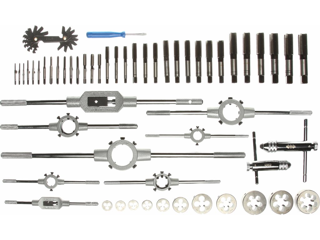 Komplet v kovinskem ohišju vsebuje 11 navojnih matric HSS, 33 kompletnih HSS pip po DIN352, 6 ključev za očesca, 2 ključa za pipe, 2 ključa z zaskočnim ključem za pipe, izvijač in merilnike navoja. Dimenzije navojev v osnovnem koraku: M3, M4, M5, M6, M8, M10, M12, M14, M16, M18, M20.