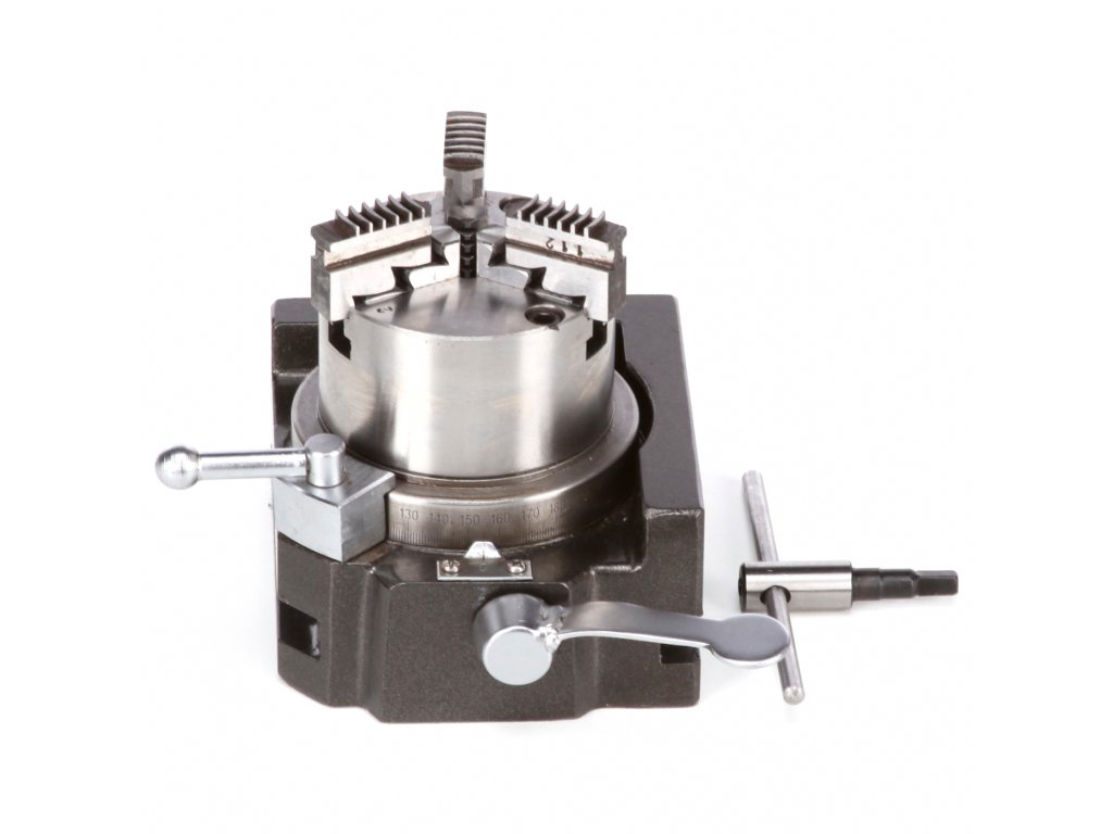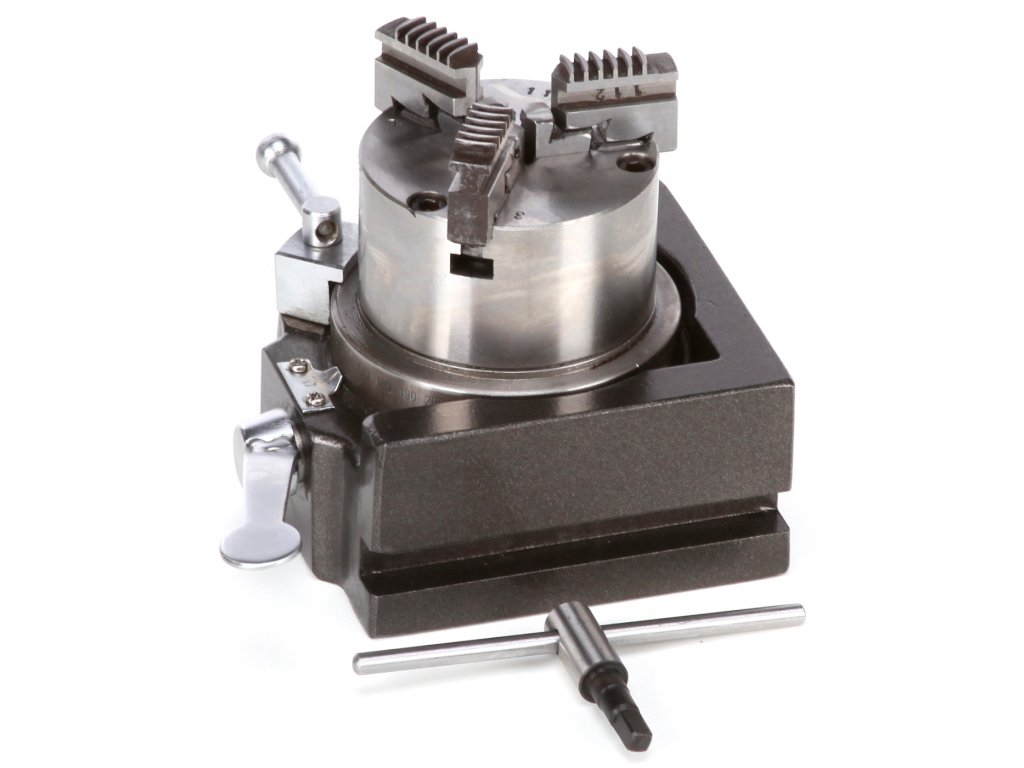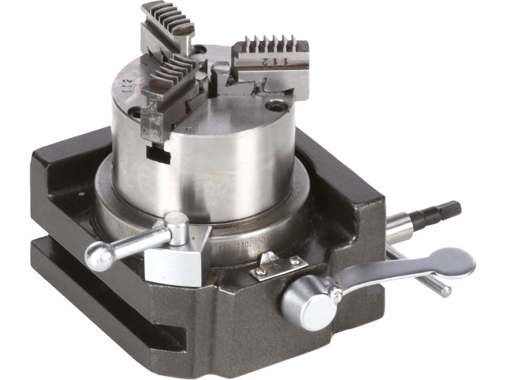 Vpenjalna glava za vpenjanje v vodoravni in navpični smeri, primerna za vrtanje in rezkanje. Dimenzije mize 125 × 115 mm, višina 125 mm. Premeri vpenjanja: premer notranje čeljusti 48 mm, premeri čeljustnih korakov obeh izvedb: 70, 90 in 100 mm. Premer glave valja 80 mm. Tri čeljusti z velikim razponom omogočajo vpenjanje tudi velikih obdelovancev, min. vpenjalni premer 1 mm, glava opremljena z lestvico 1°.