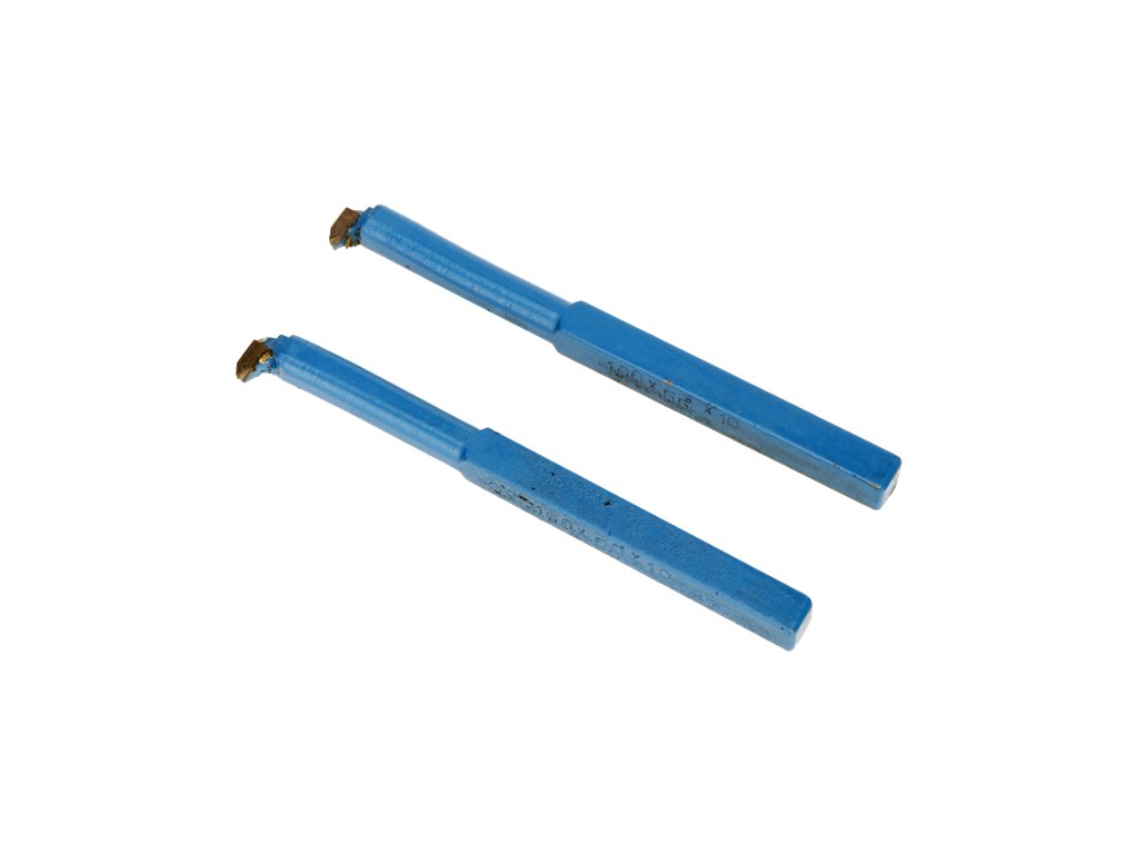 Komplet 2 navojnih notranjih orodij za struženje 10 × 10 mm s spajkanimi rezili. Koti vrha na lopaticah 55° in 60°.
