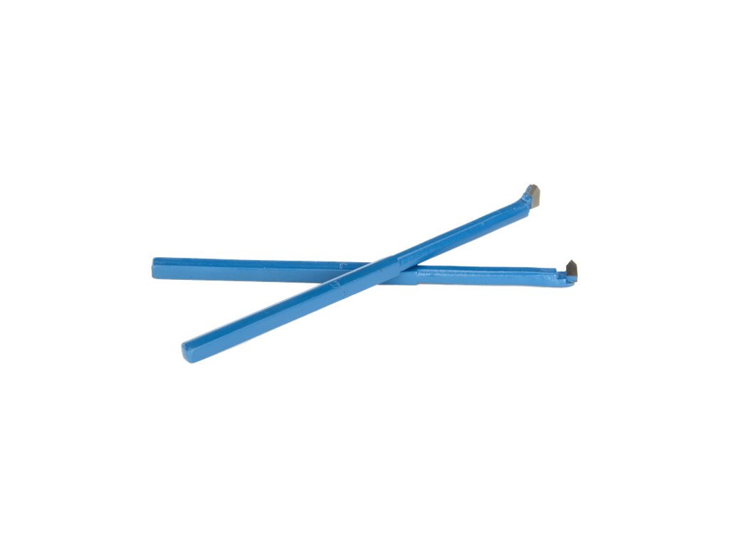 Komplet 2 navojnih notranjih orodij za struženje 6 × 6 mm s spajkanimi rezili. Koti vrha na lopaticah 55° in 60°.