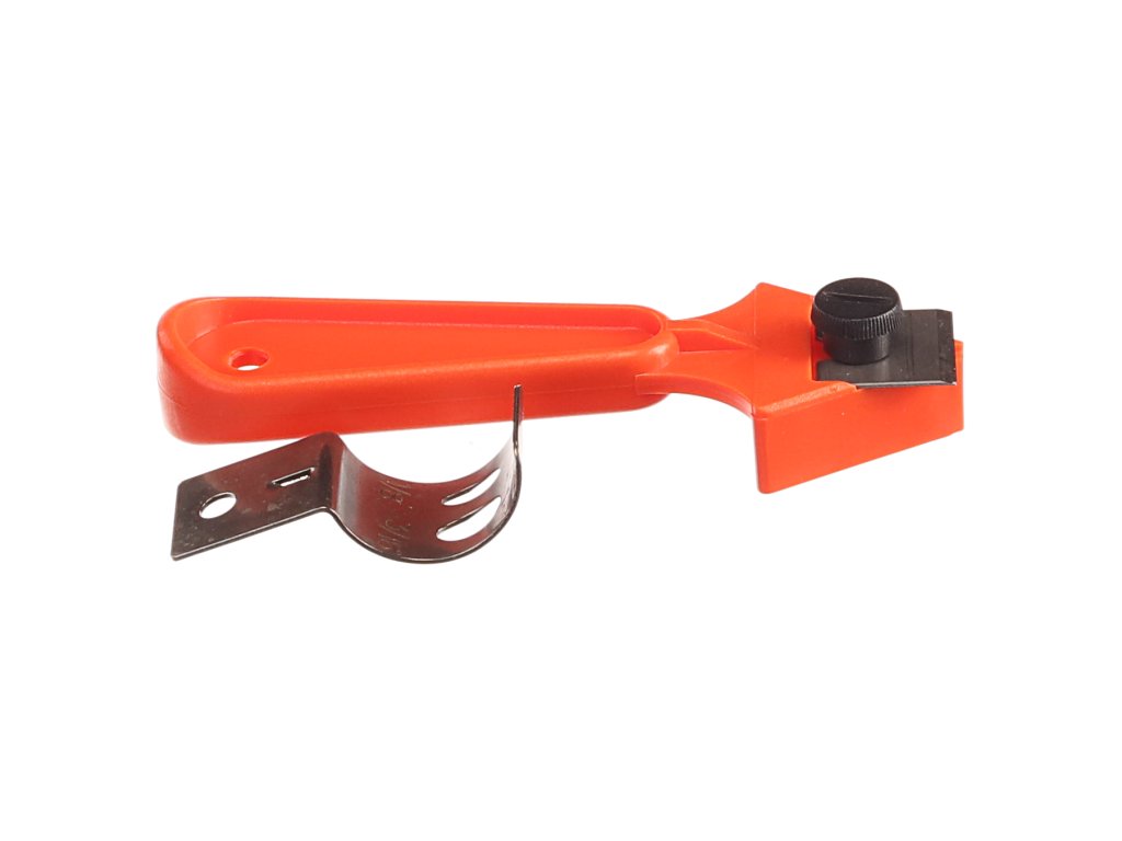 Pomoč za obrezovanje robov in robnih trakov. S tem nožem lahko obrežete zaobljene robove. 2 različna polmera obrezovanja. Rezilo iz visokokakovostnega ogljikovega jekla, plastični ročaj za varen oprijem.