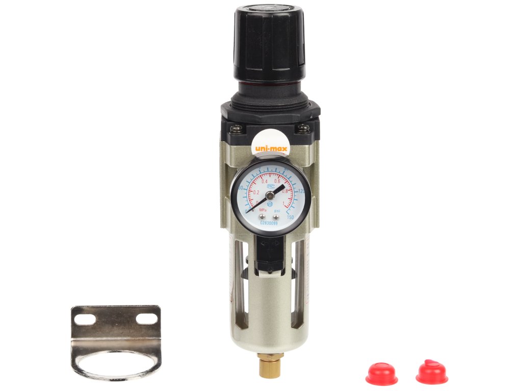 Za čiščenje zraka iz mahu. Priključni navoji G3/8", nazivni pretok 2.000 l/min., max. delovni tlak 1,0 Mpa (10 bar), delovna temperatura 5 – 60 ° C, filtracija 25 um, zaščitni pokrov, ročni odtok, teža 0,56 kg.