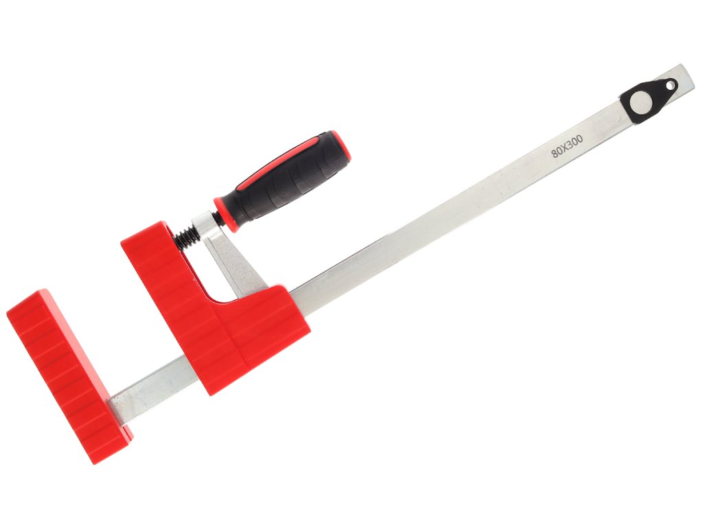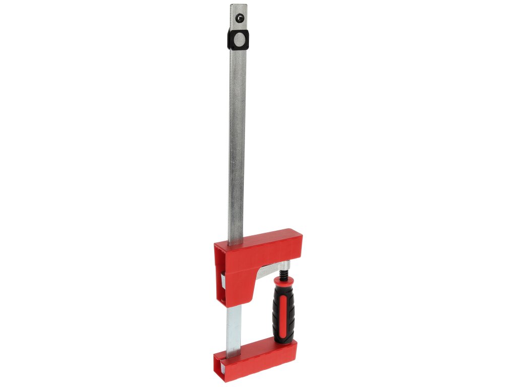 Dvostranska objemka 305 mm z ergonomskim ročajem iz PP/TPR, plastičnimi oblogami čeljusti, pocinkanim ohišjem, letvijo 5 × 20 mm, 80-mm čeljustjo in skupno dolžino 455 mm. Idealna za trdno in obratno vpenjanje.