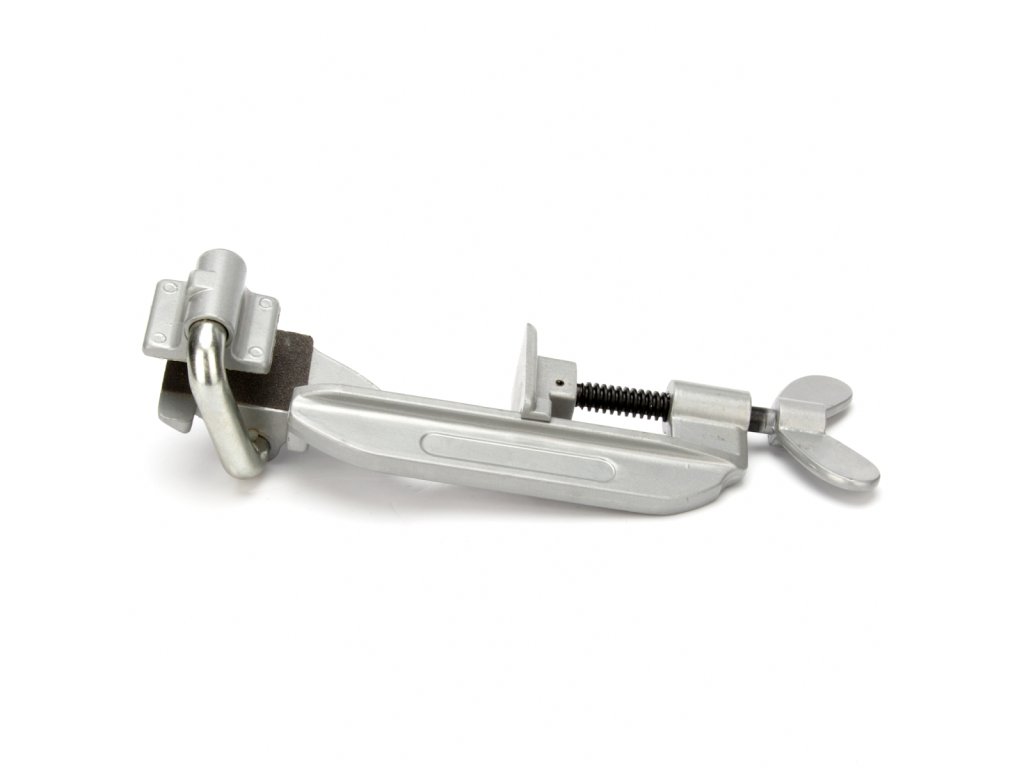 Objemka za vpenjanje delov v spoju "T", izdelana iz aluminijeve zlitine, je popolnoma primerna za izdelavo polic. Debelina vpetega materiala je do 19 mm, torne čeljusti zagotavljajo, da so deli trdno pritrjeni pod pravim kotom.