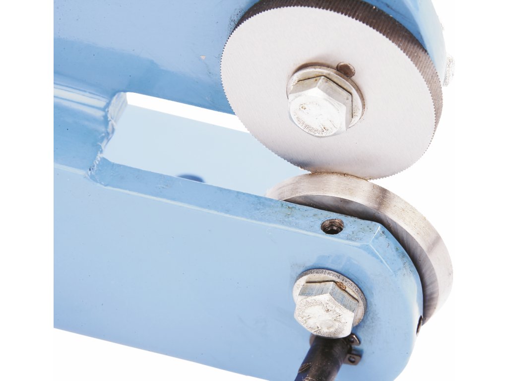 Največja debelina rezanega materiala je 1,5 mm (blago jeklo). Premer rezila 50 mm.