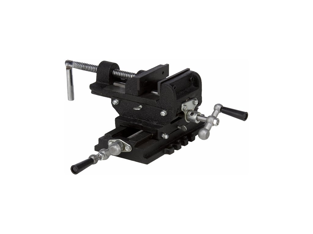 Cross vice v konstrukciji iz masivnega litega železa, namenjen za rezkalne stroje in vrtalnike.
