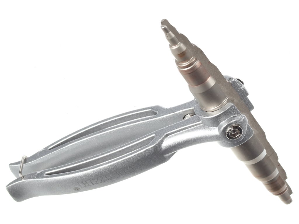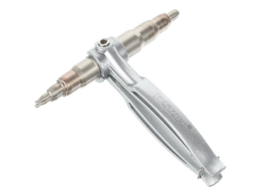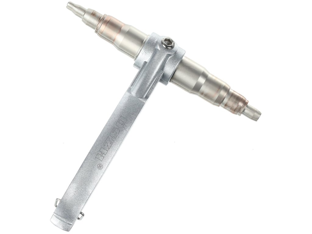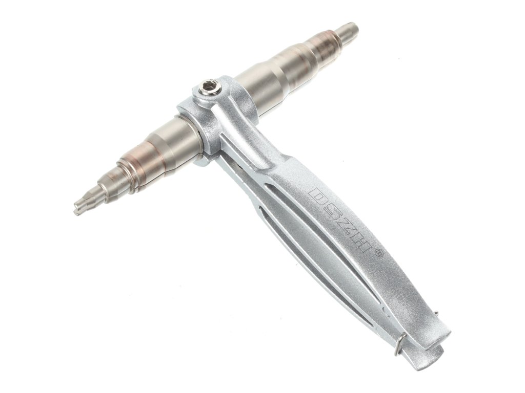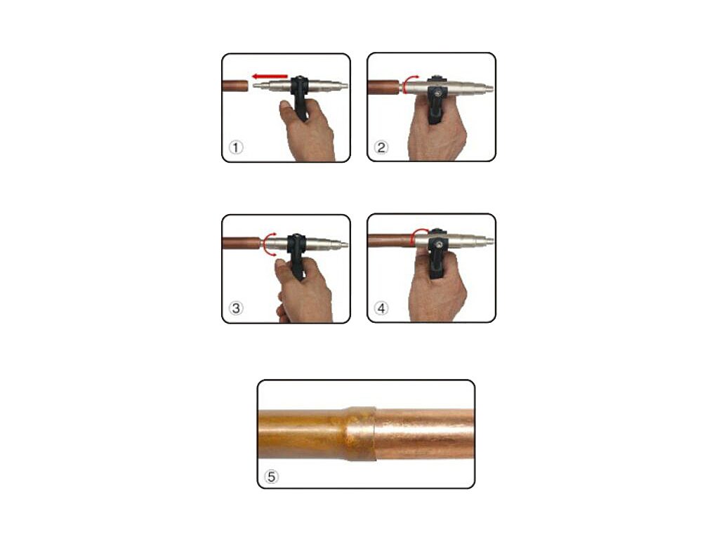 Ročno mehansko orodje za raztezanje koncev bakrenih cevi. Orodje: premer 4; 6; 7,4; 10,3; 13,4; 15,6; 17,2; 18,2 in 20 mm.