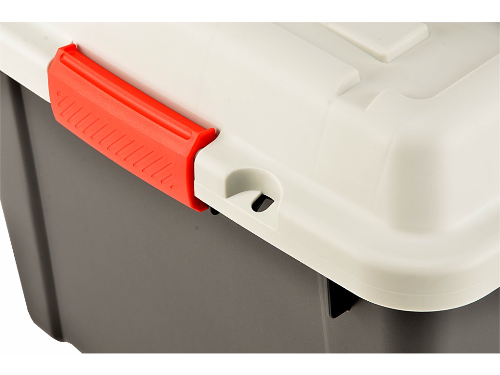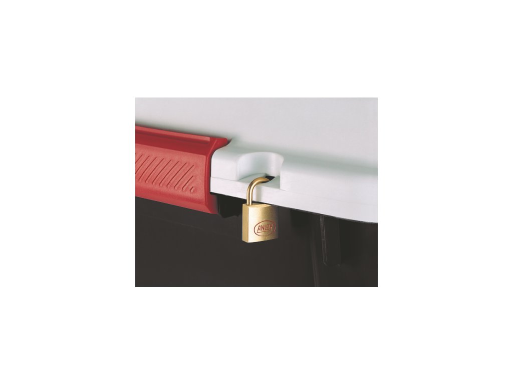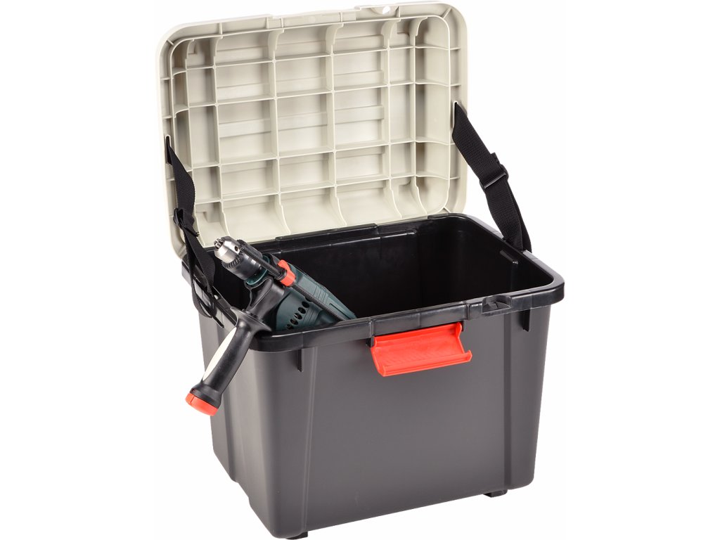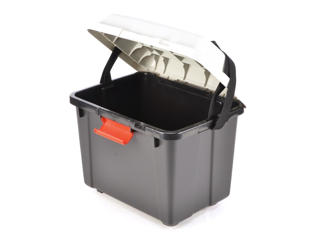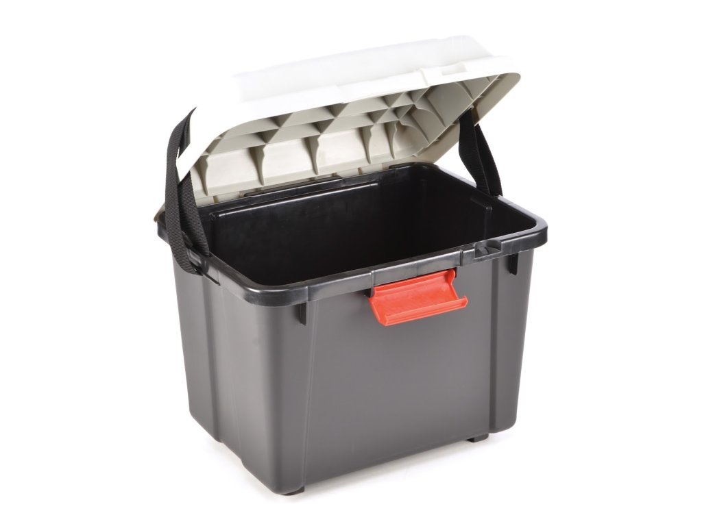 Primerno za shranjevanje različnih potrebščin, npr. kampiranje, rekreacija in doma. Opremljen je z luknjami za ključavnico. Notranje dimenzije zgornjega roba 43 × 30 cm, dimenzije dna 40 × 26 cm, globina 31 cm.