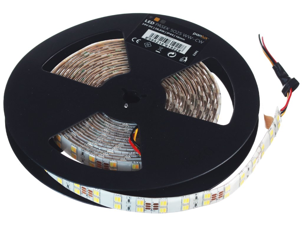 Trak z dvema neodvisnima vezjema LED čipov - intenzivnost toplih in hladnih belih barv se lahko prilagodi samostojno LED trakovi predstavljajo sodobno, elegantno in hkrati ekonomično svetlobno rešitev v notranjosti in zunanjosti. Namestitev teh LED trakov je zelo preprosta. Zahvaljujoč svoji konstrukciji je LED trak zelo prilagodljiv in kot nalašč za razsvetljavo, kjer drugi viri svetlobe ne bi uspeli. POZORNOST! Ti LED trakovi so napajani na 24V DC, za povezavo z 230V potrebujete LED DRIVER. Napetost - 24 V DC, Poraba energije - 28,8 W/m, Svetlobni tok - 2500 lm/m, Širina 16 mm, Višina 2 mm, Paket - 5 m, Lahko ga delimo z - 10 cm, Barva svetlobe - toplo/hladno, Stopnja zaščite - IP44.