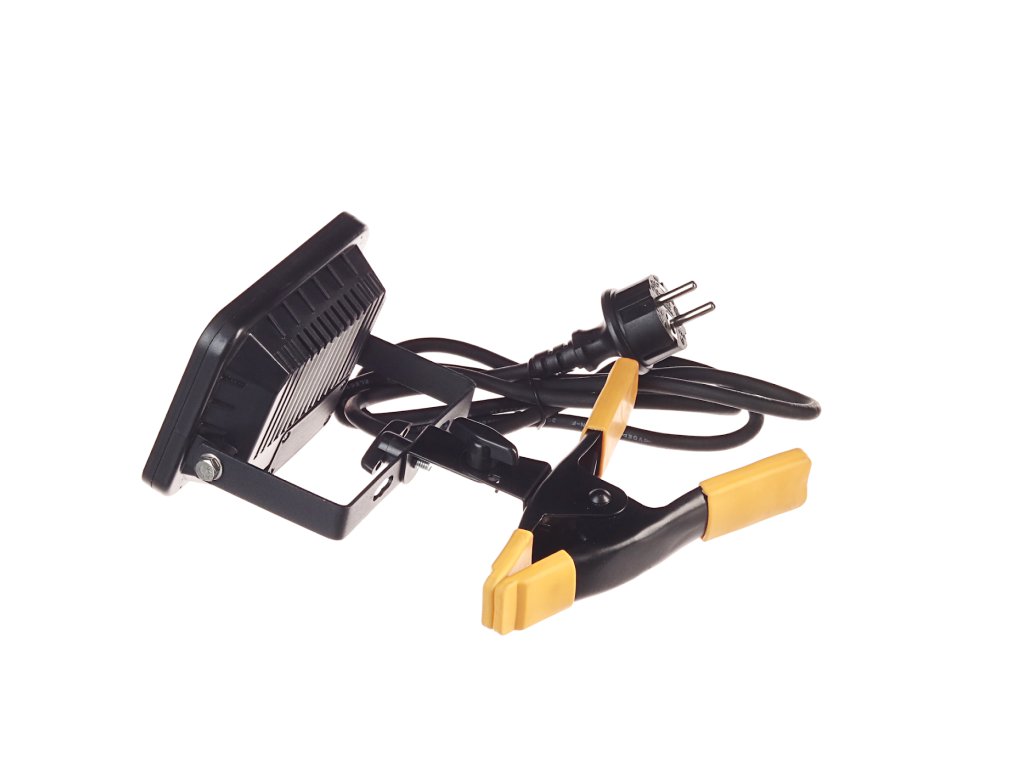 Sodobna, vitka izvedba s sponko za enostavno pritrditev svetilke na primerno podlago. Svetlobni vir iz super svetlih SMD LED, svetlobni tok 900 lm, napajalnik 230 V / 50 Hz, napajalni kabel 1,8 m. Izdelana iz aluminijeve zlitine in ABS. Reflektor lahko zavrtite v vse smeri.
