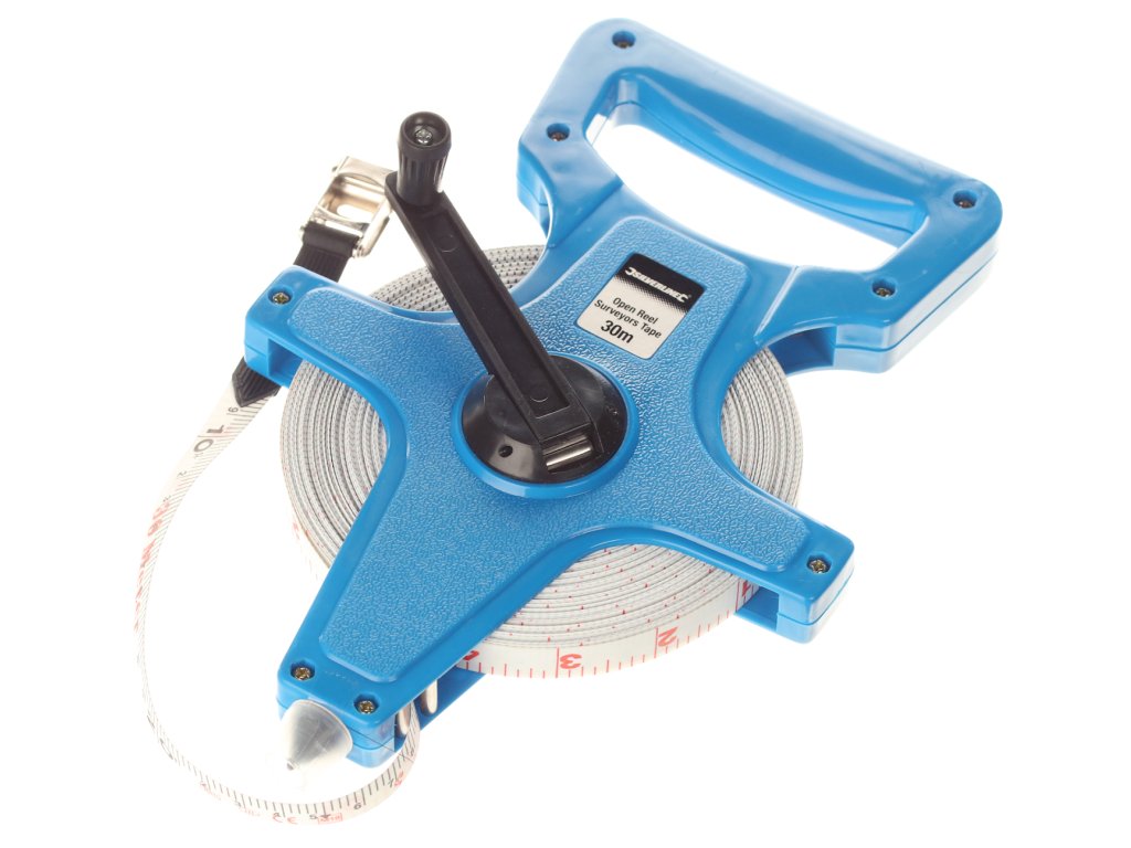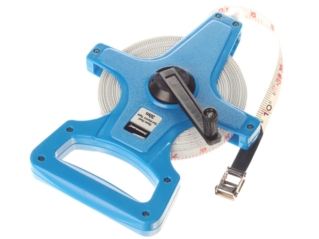 Trpežen trak z metrično in palčno lestvico. Močan plastični pokrov z zložljivim zložljivim ročajem.