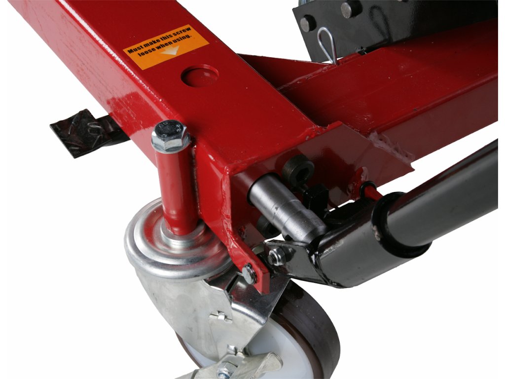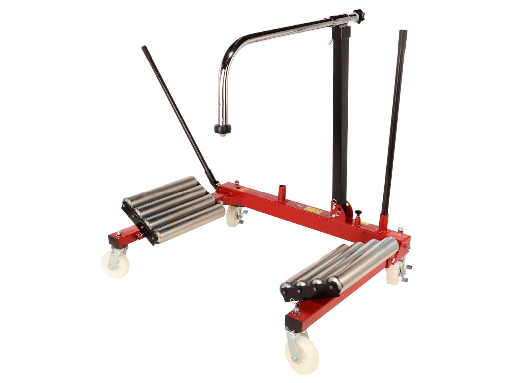Za enostavno montažo in odstranitev koles tovornjaka, traktorja in težke opreme. Dimenzije 1.270 ×.990 × 1.340 mm omogočajo tudi uporabo za dvojno montažo. Enostavno krmiljenje na vrtljivih kolesih, hod 0 – 760 mm. Pritrditev kolesa z nastavljivo palico.