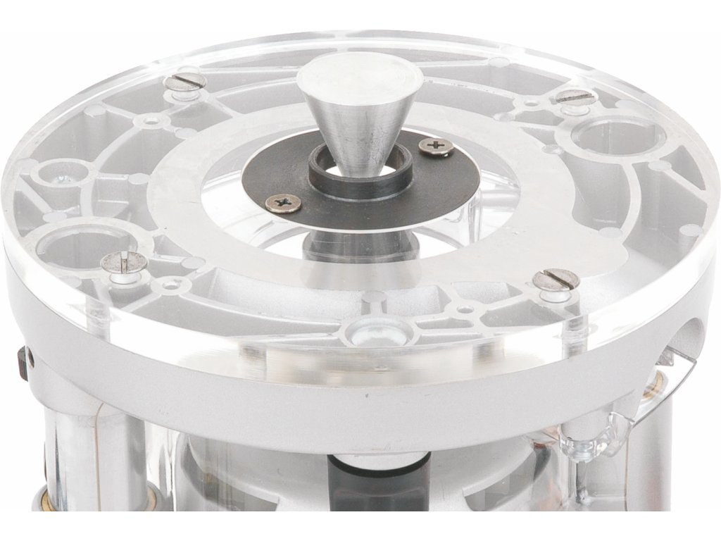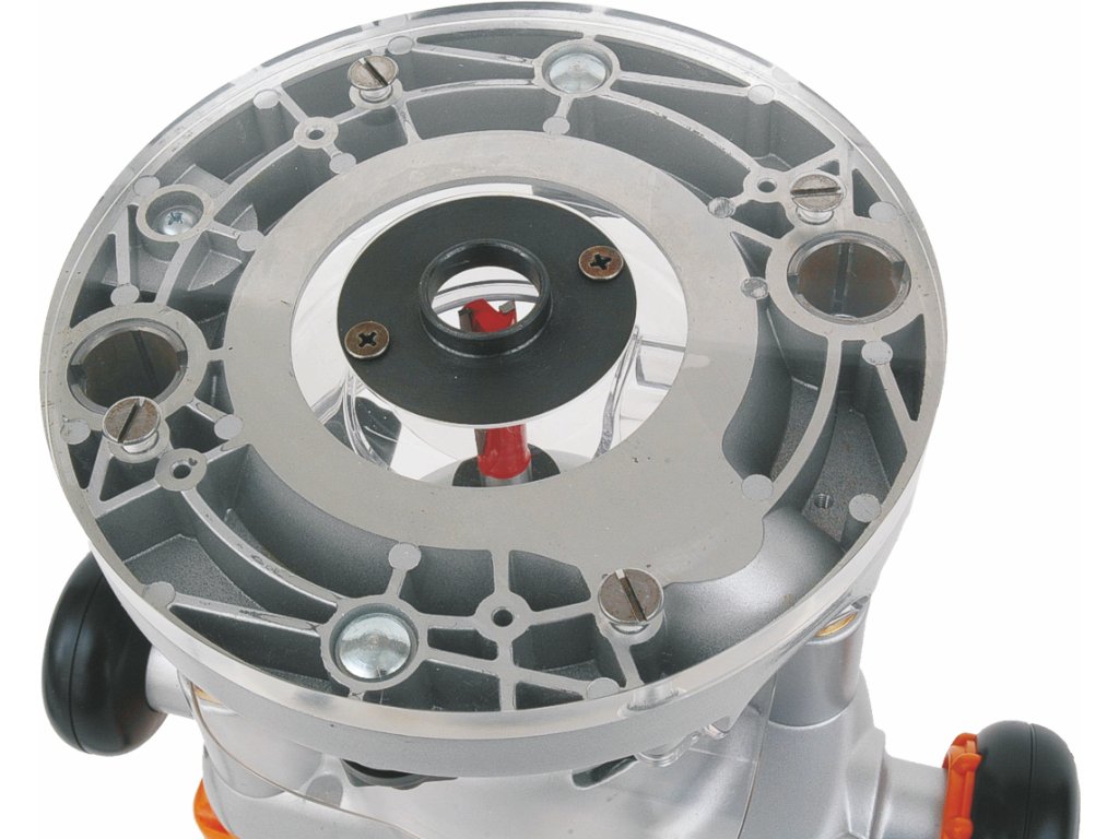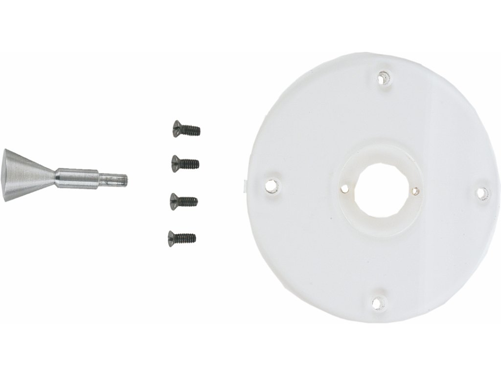 Redukcijska plošča za montažo kopirnih obročev na usmerjevalnik. Za montažo na različne vrste rezkalnih strojev je potrebno za nastavitev plošče uporabiti centrirni trn. Z vrtanjem lukenj glede na dno naprave lahko ustvarite zmanjšanje za katero koli vrsto. Komplet vsebuje ploščo, centrirni trn in 4 vijake za montažo na rezkalni stroj.