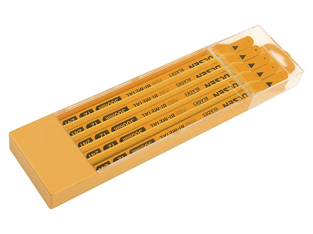 Dolžina 300 mm omogoča vpenjanje v vse klasične kovinske žage, zobe iz hitrega jekla HSS za dolgo življenjsko dobo, bok iz visokokakovostnega orodnega jekla, optimalno velikost zob (24 zob na 25 mm) za razrez večine kovin, kovinskih zlitin in trde plastike. 100 kosov v plastični škatli. Pakirano v škatli po 10 kosov. Škatlo lahko obesite.