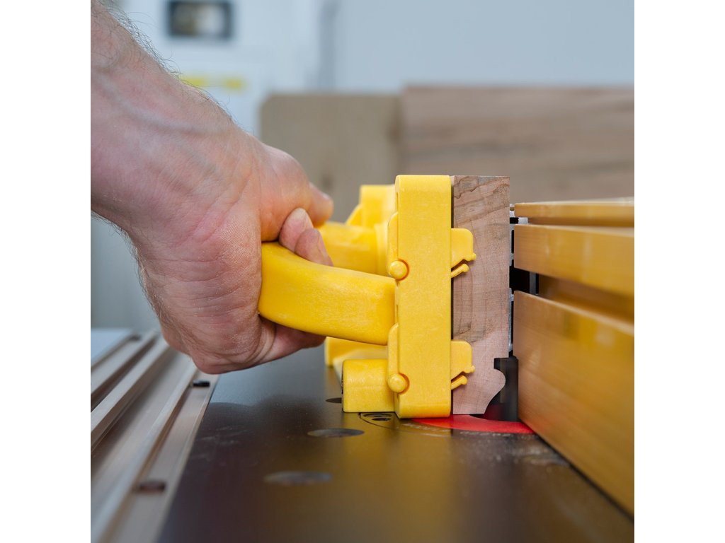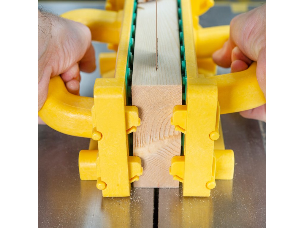 Po obračanju za 90 stopinj se ograja lahko uporablja tudi pri rezanju furnirjev, žaganju tračne žage ali pri rezanju sprednjih okvirjev in drugih posebnih profilov. Ne glede na to, kako ga obrnete, se bodo pametni kavlji zaskočili na svoje mesto.