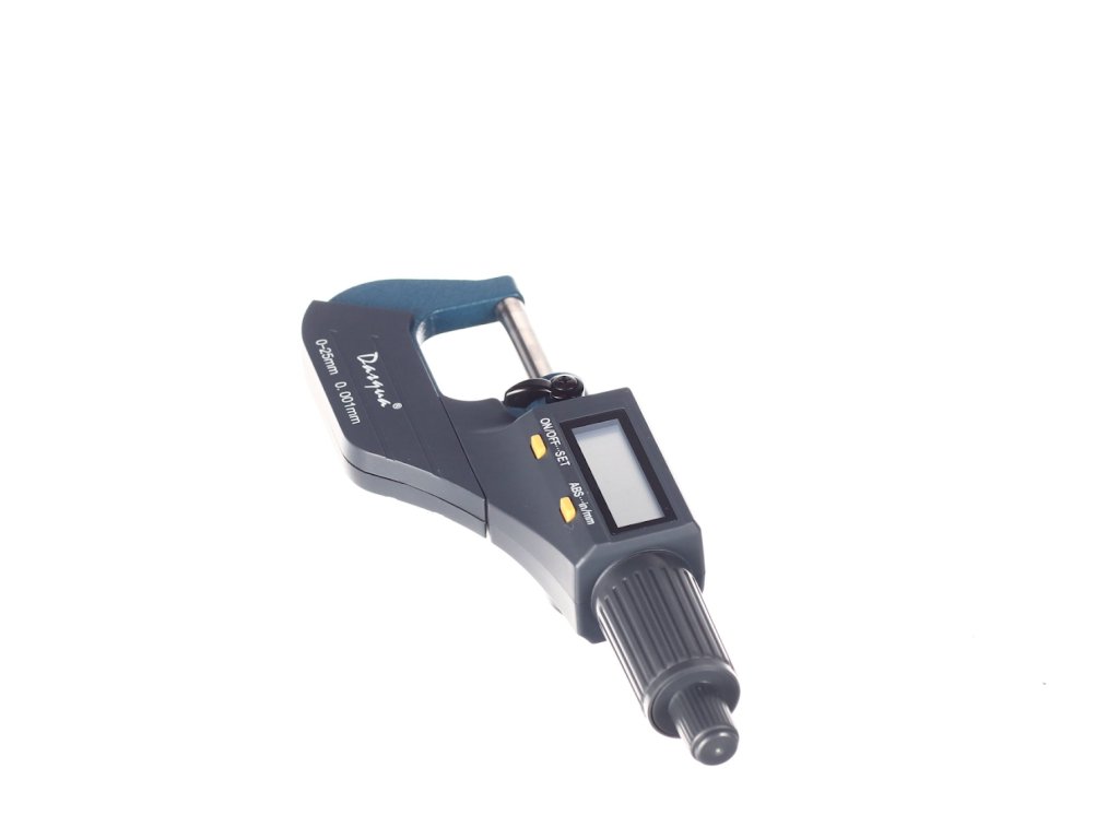 Digitalni mikrometer z merilnim območjem 0 – 25 mm, ločljivost 0,001 mm. Naprava vam omogoča merjenje v milimetrih in palcih, velik LCD zaslon. Baterija CR2032 ni priložena. Dobavljeno v plastični škatli.