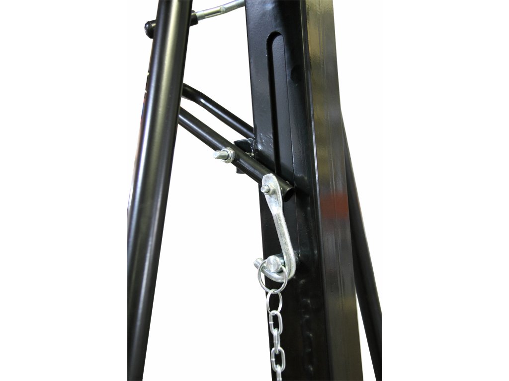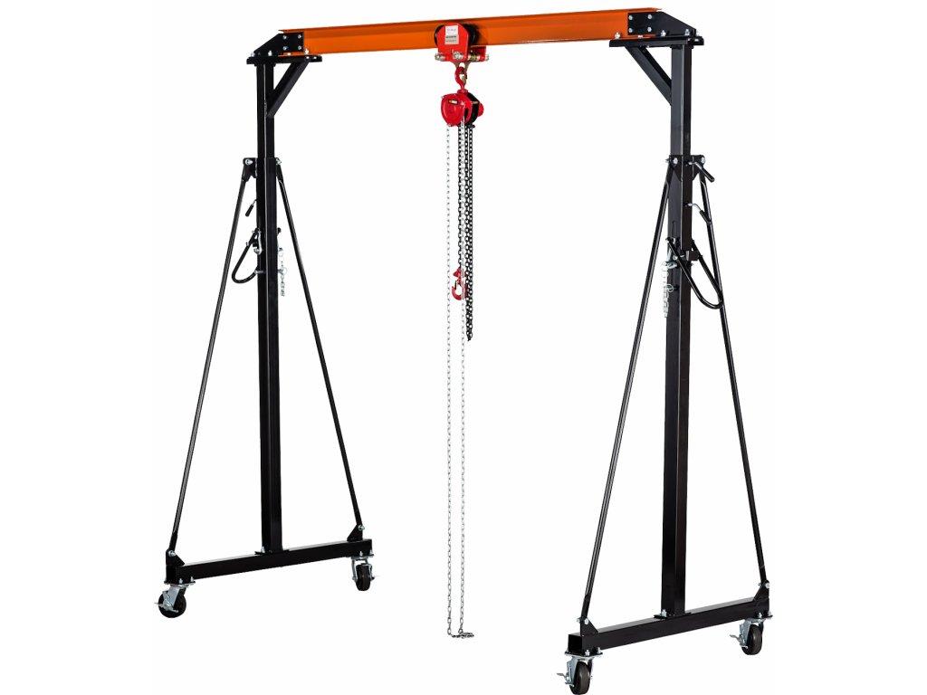 Premični portalni žerjav na kolesih nosilnosti 2.000 kg. Mehanski dvig, delovna višina 2.400 – 3.600 mm, širina med stebri 2.360 mm, skupna min. višina 2.565 mm. IPE prečni prerez, višina 165 mm, širina 90 mm.