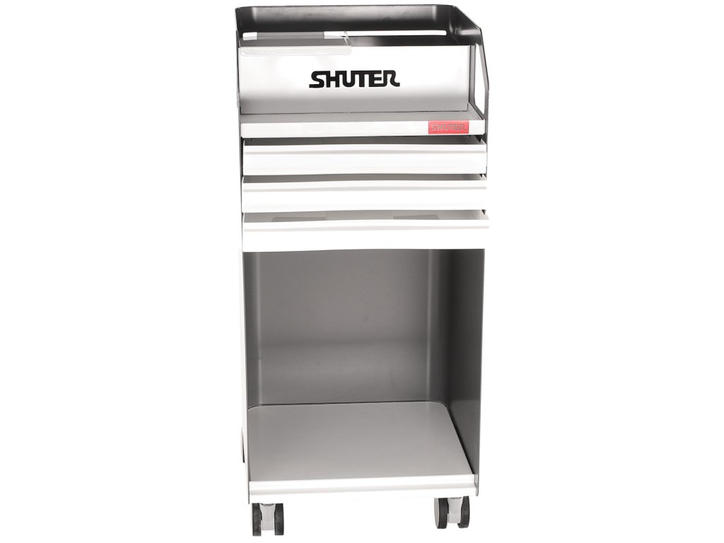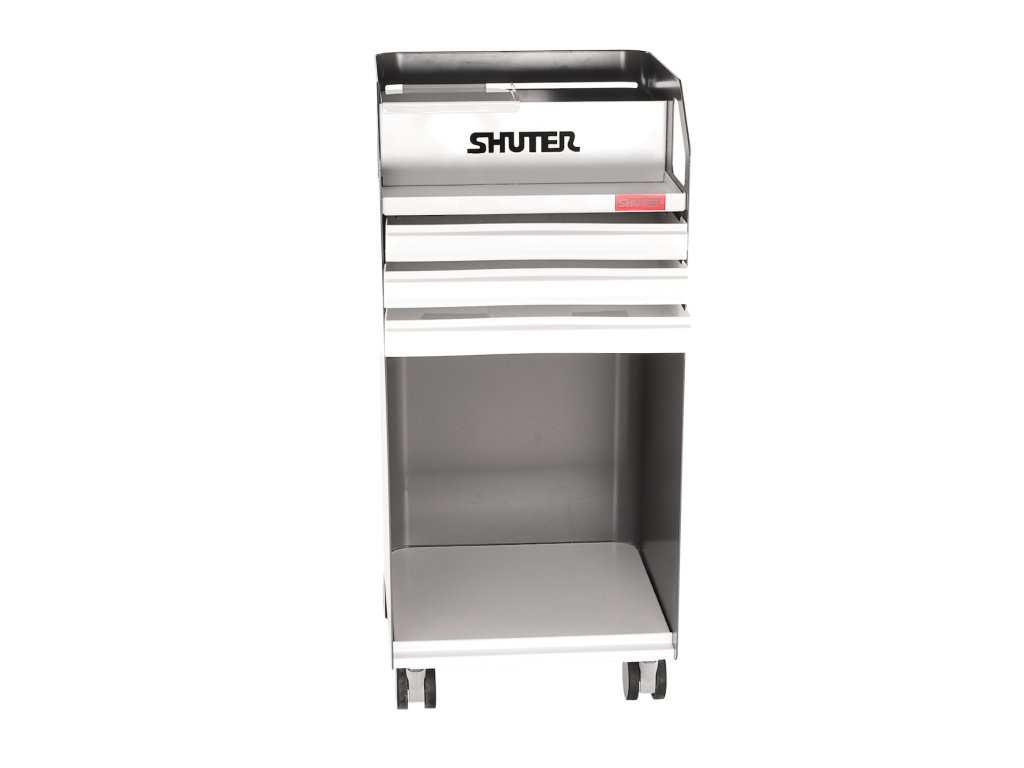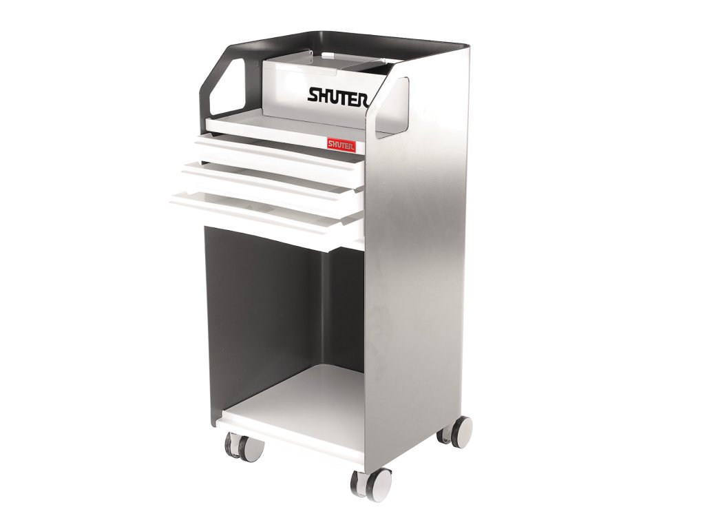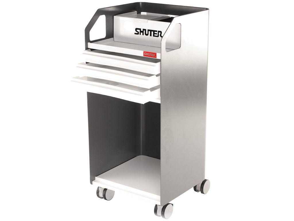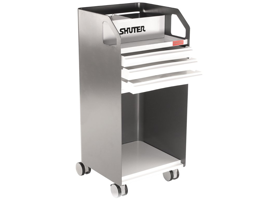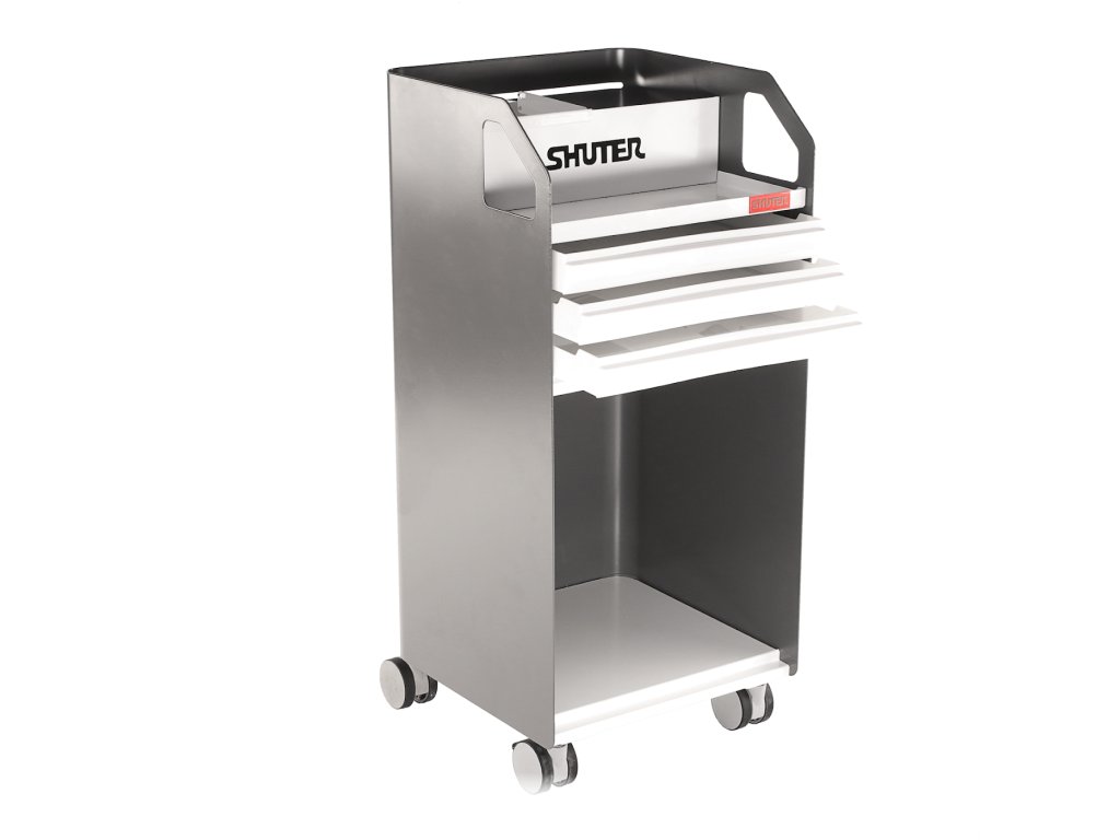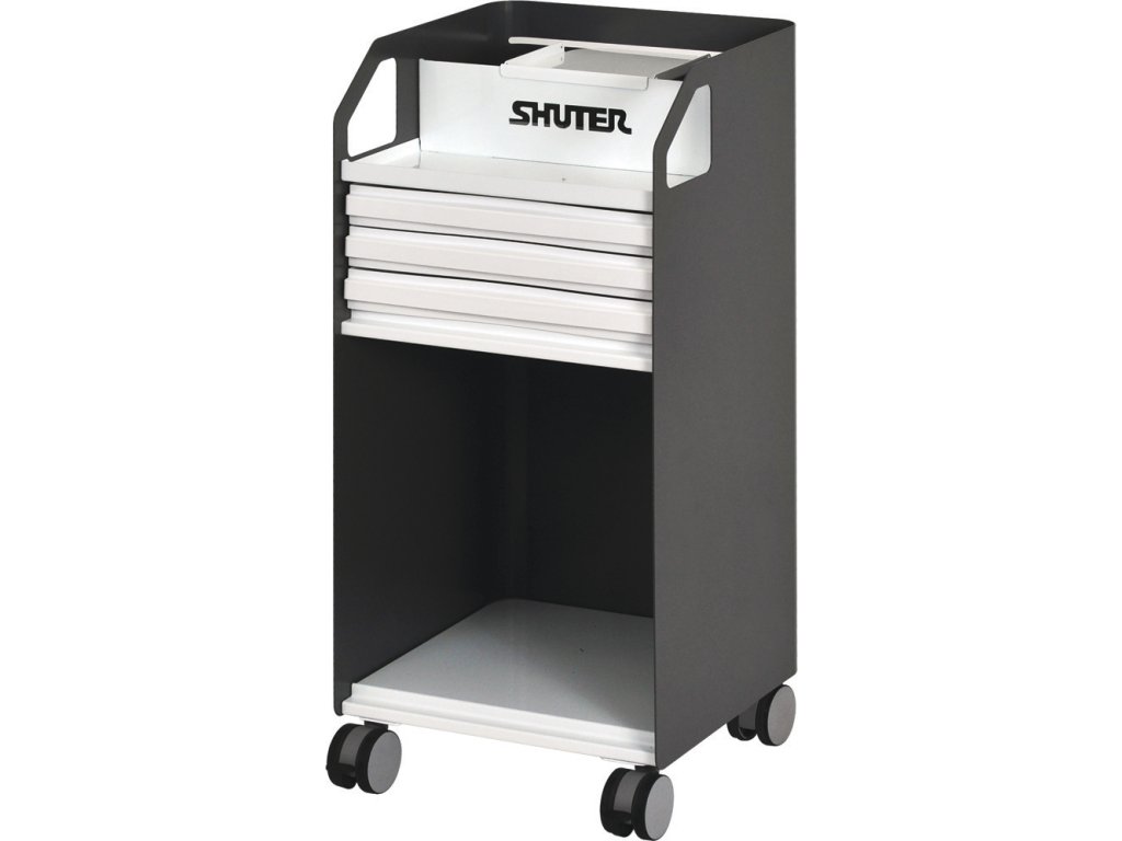Kovinski valjčni kontejner je opremljen s tremi predali dimenzij 315 ×225 ×30 mm in zgornjo skladiščno ploščo. Dimenzije (Š × D × V): 330 × 330 × 740 mm. Premer kolesa 60 mm. Podnožje je izdelano iz pocinkane jeklene pločevine, vtičnica je izdelana iz plastike IPS. Skupna nosilnost mize je 100 kg.