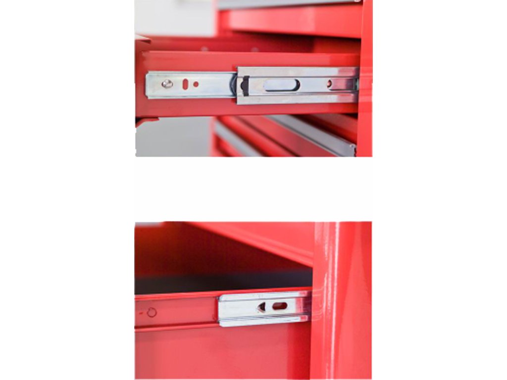 Prašno barvana jeklena konstrukcija, 4 vodilna kolesa (od katerih sta 2 lahko popolnoma zavirana), 2 visoka in 2 nizka jeklena predala, drsni izvlečki, spodnji prostor za shranjevanje. Dimenzije omarice 560 × 305 × 755 mm.