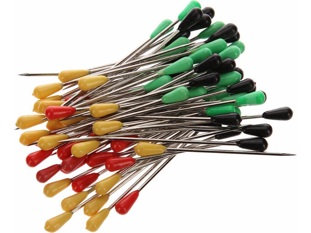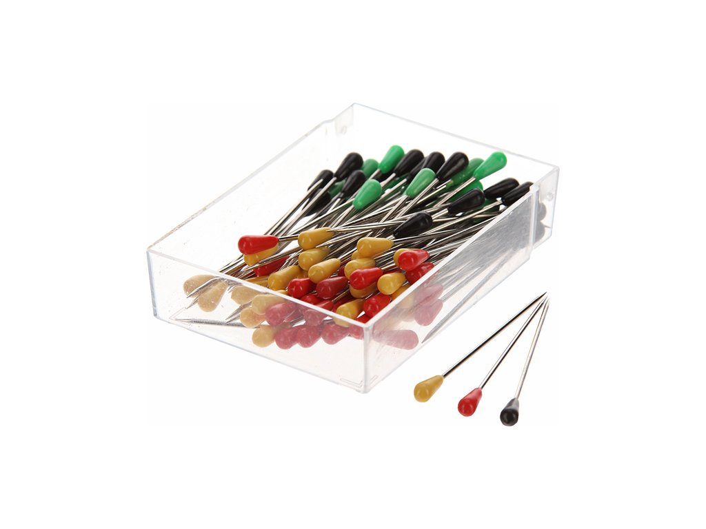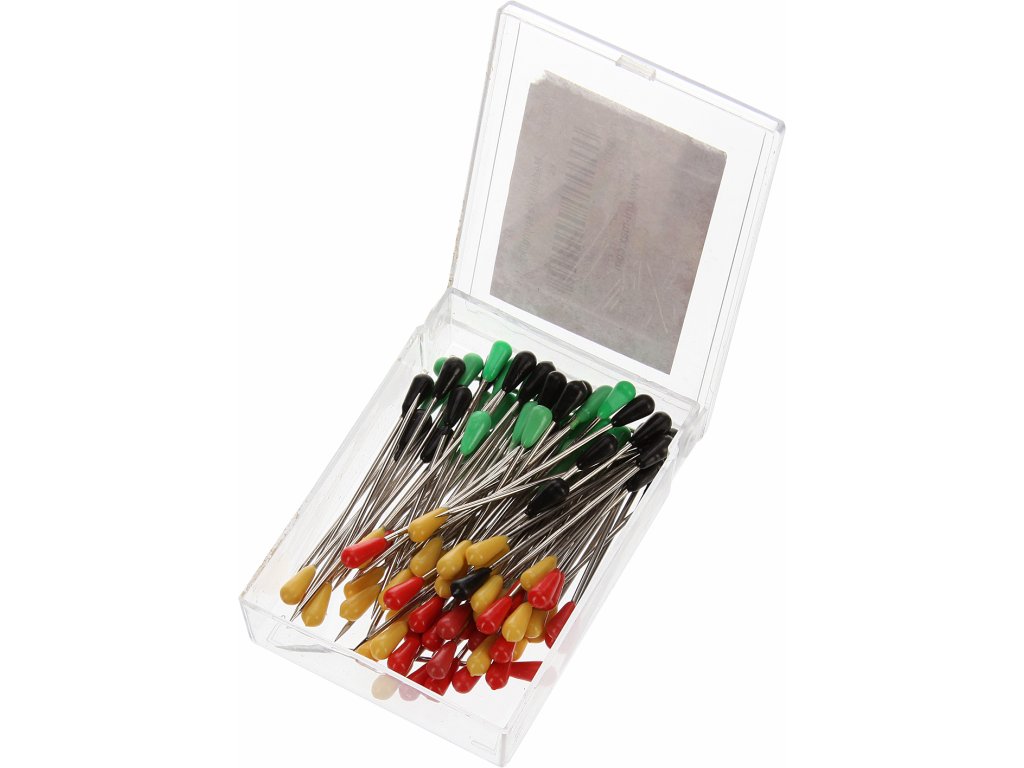 Dolžina zatičev 62 mm; premer 1, 4 mm; glave različnih barv.