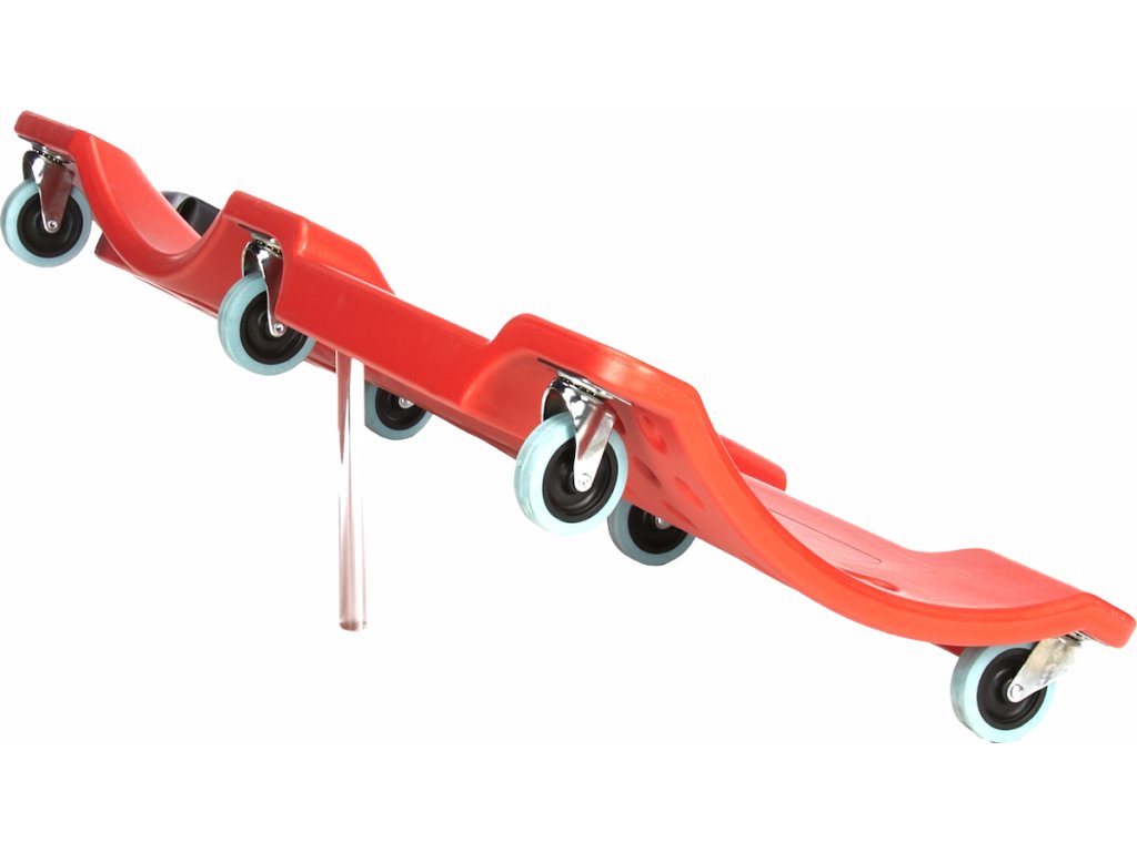 Montažni ležalnik z ergonomsko zasnovo s predali za shranjevanje, naslonom za glavo in šestimi kolesi. Izdelana iz plastike, ki je enostavna za nego, odporna na maziva in goriva.