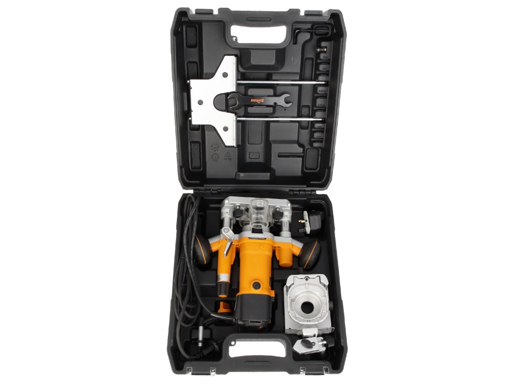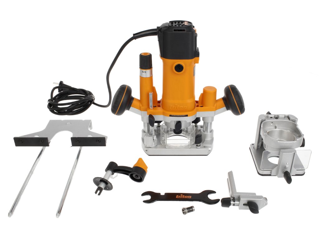 Vključuje potopno in obrezovalno podlago, pritrditev valja, ročico za nastavitev višine, vzporedno ograjo, 1/4" in 8 mm kolete, vpenjalni ključ in pritrdilni nastavek.