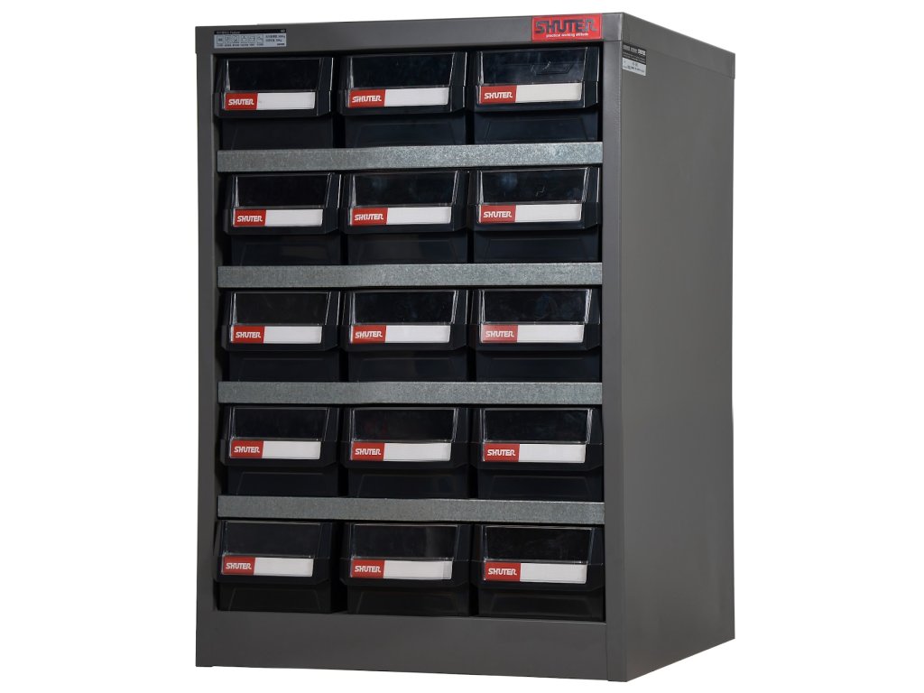 Telo je izdelano iz 0,88 mm debele pocinkane pločevine iz nerjavečega jekla z 0,1 mm debelim sivim praškastim premazom. Omejitev teže za vsak črni predal je do 20 kg, prostornina 5,6 l. Opremljen je z vogalnimi ščitniki in 30 loputami, skupne dimenzije (w)550 × (d)412 × (h)695 mm.